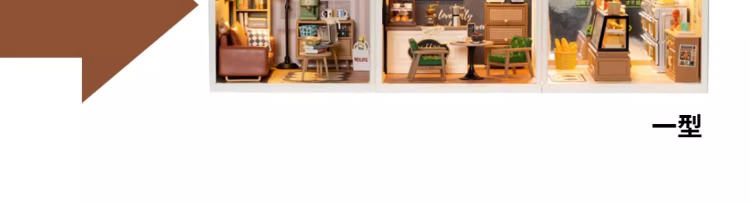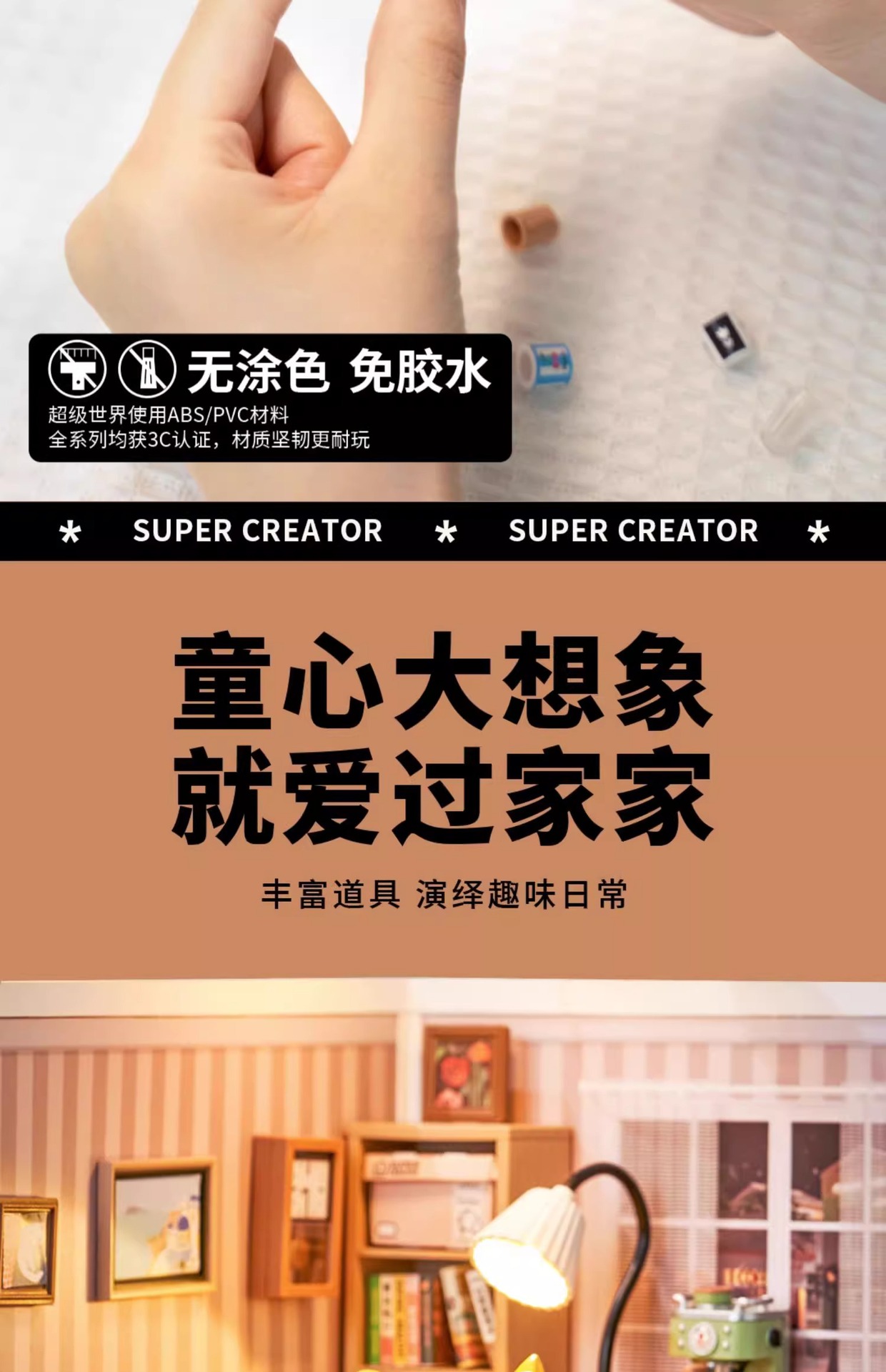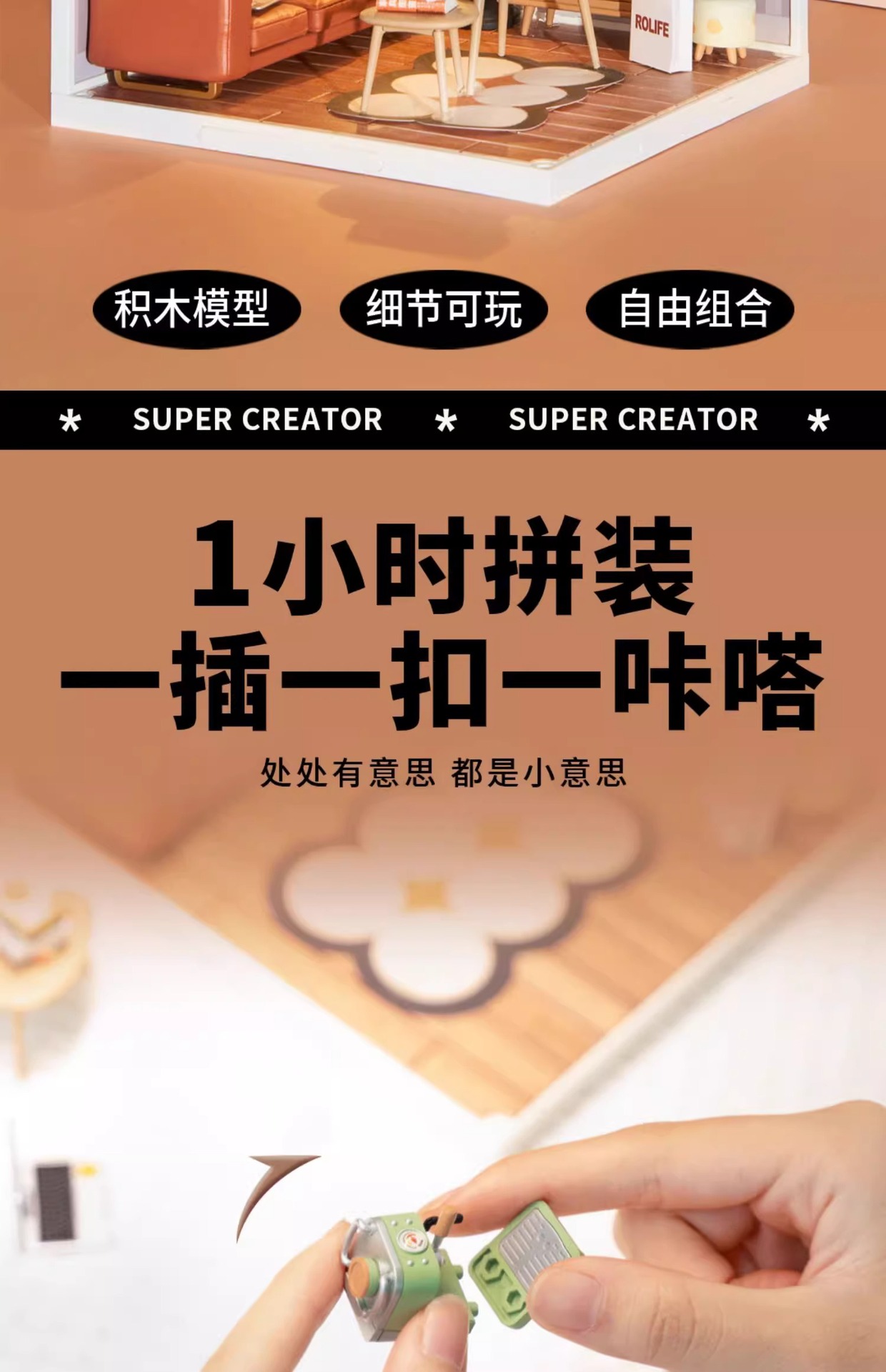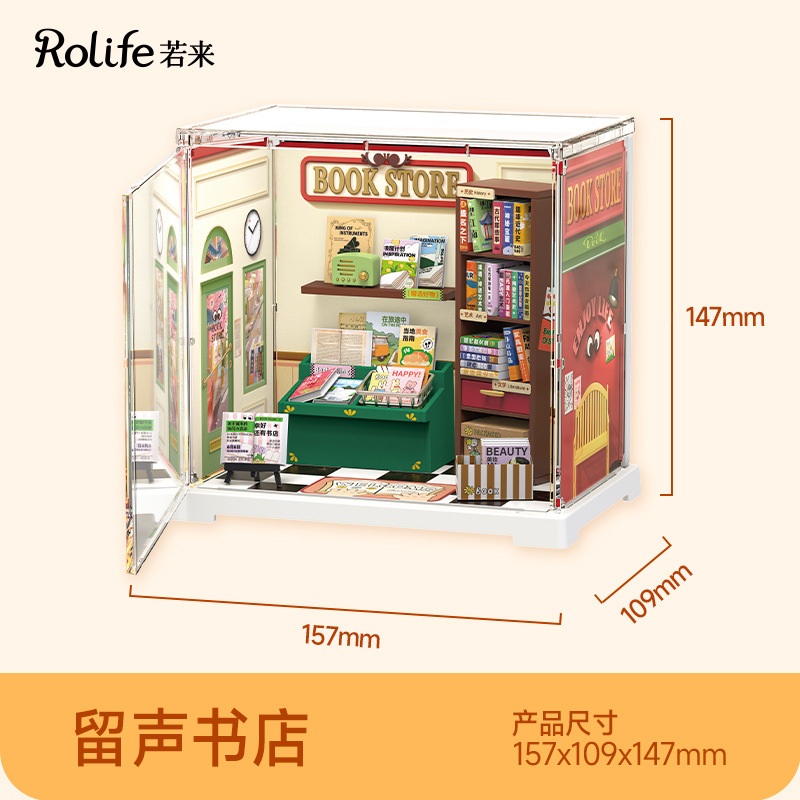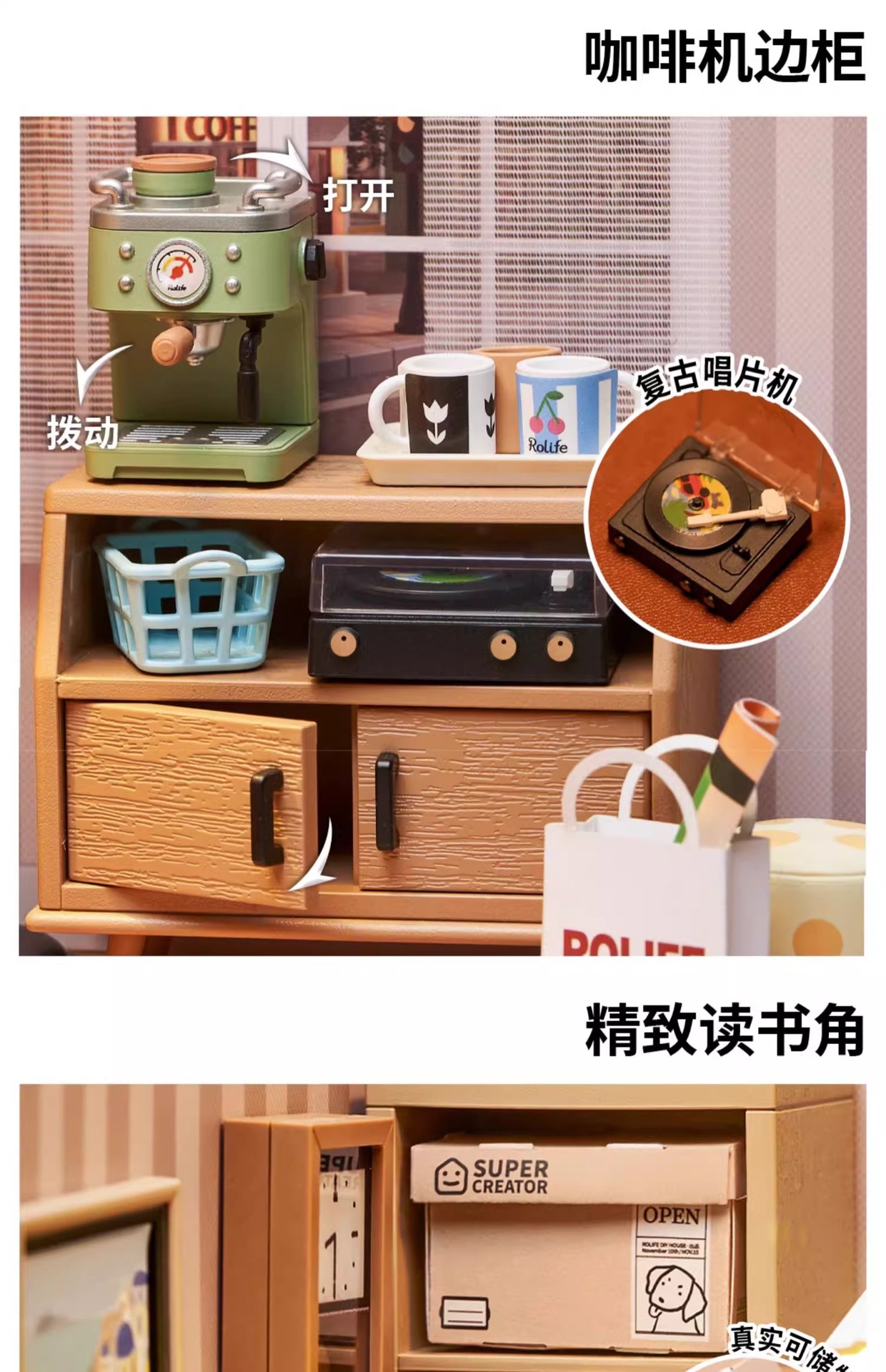 정품 Ruolai 슈퍼 월드 diy 수제 캐빈 밀크 티 샵 미니어처 조립 빌딩 블록 어린이 날 선물 장난감스토어 가기