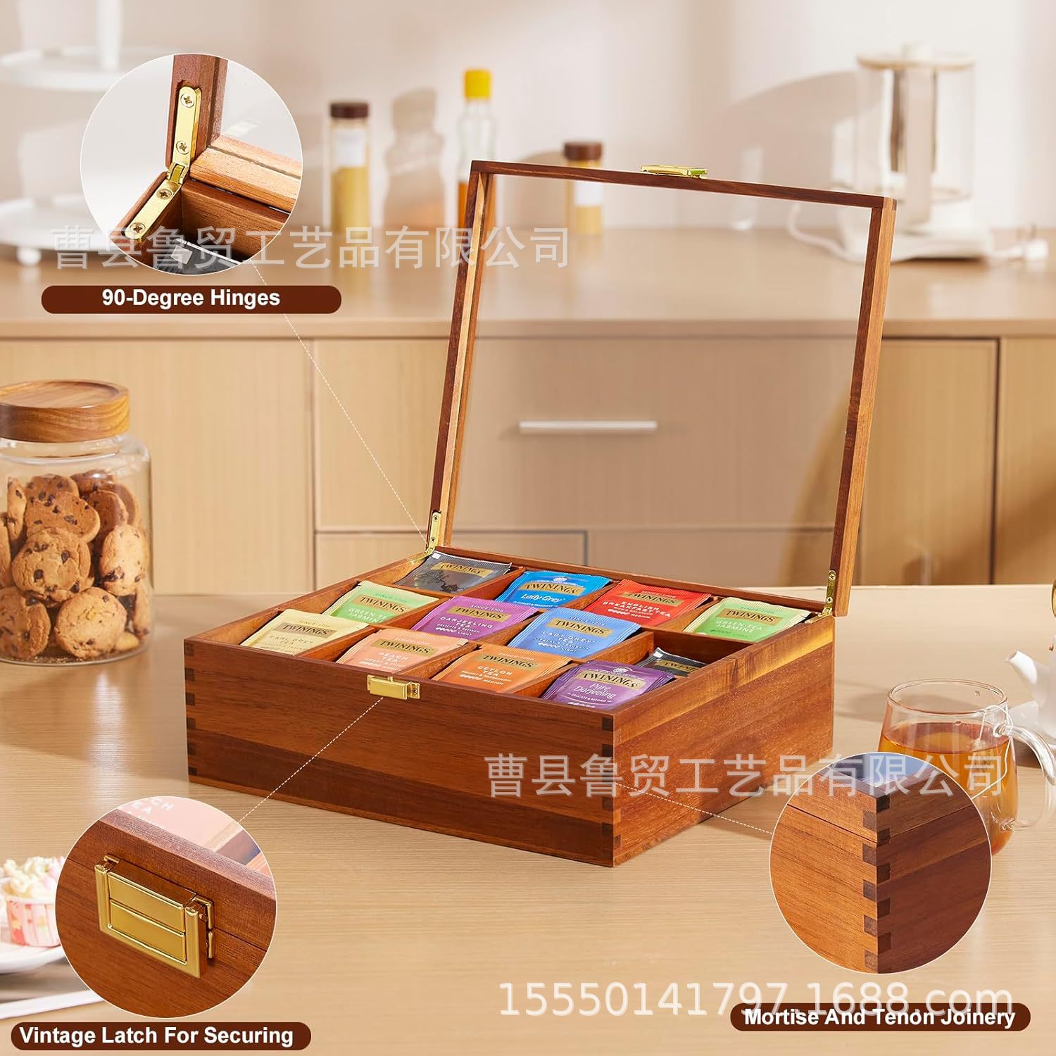 국경 간 목재 티백 보관 상자 플립 탑 차 커피 캡슐 보관 상자 파티션 보석 보석 상자 포장 상자스토어 가기