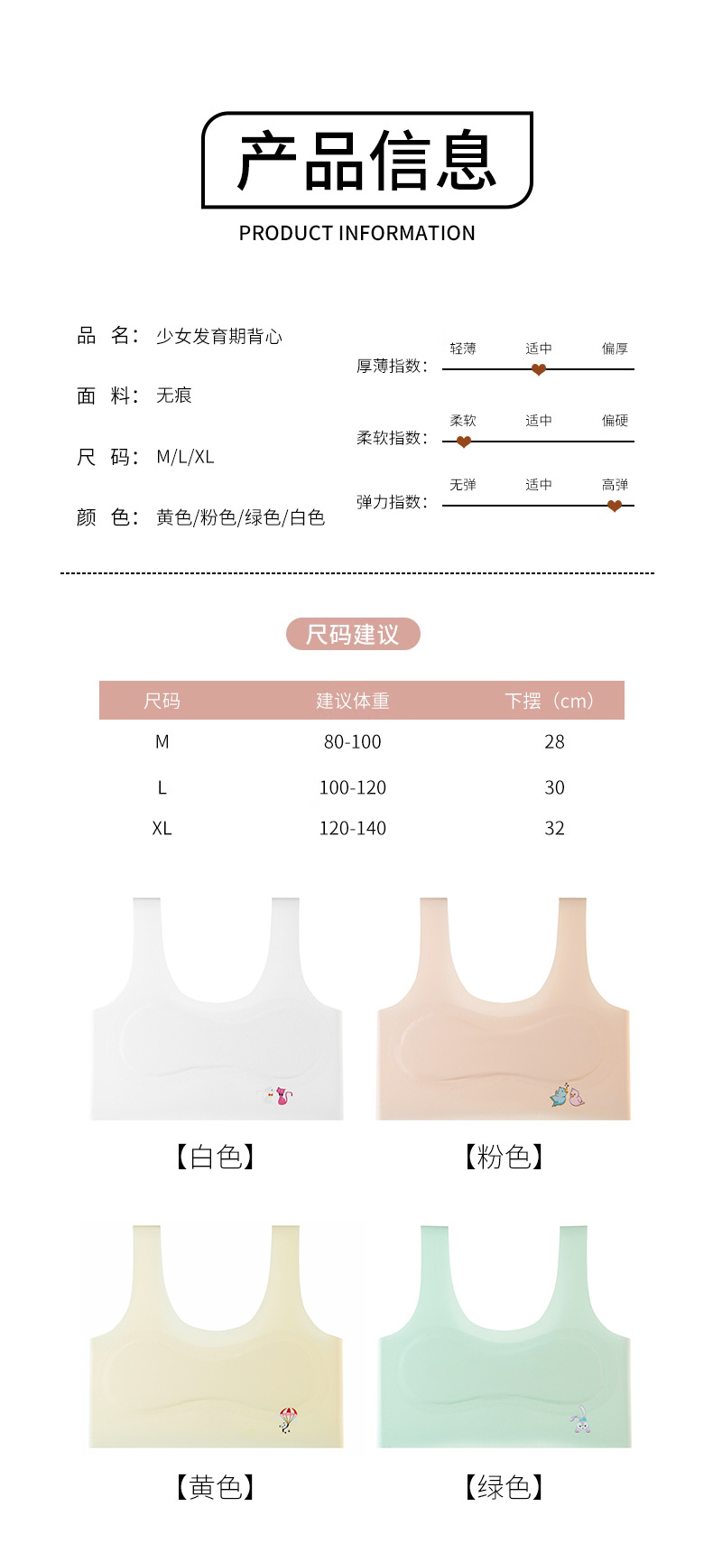 여아 발달기, 초등학생, 중학생, 7~15세 여아용 심리스 속옷, 볼록 방지 조끼, 아동용 브라
