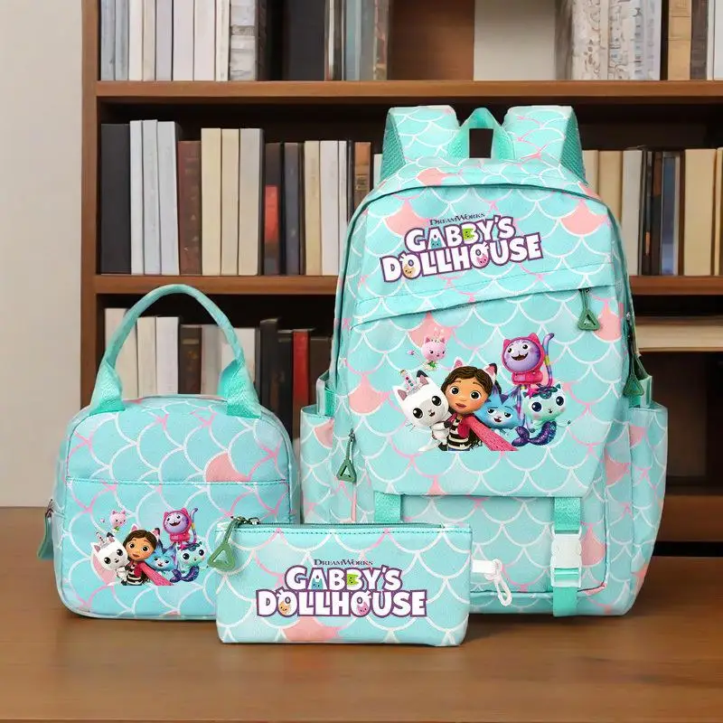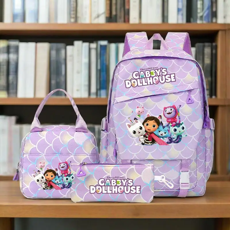 2025 국경 간 새로운 3 피스 인형 집 다채로운 배낭 점심 가방 소녀 학교 가방 야외 레저 배낭