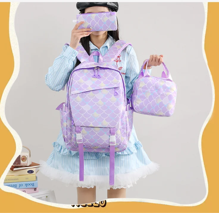 2025 국경 간 새로운 3 피스 인형 집 다채로운 배낭 점심 가방 소녀 학교 가방 야외 레저 배낭스토어 가기