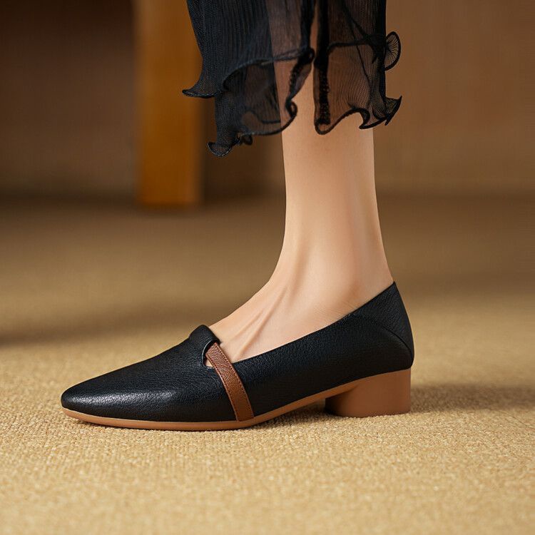여성을위한 프랑스 부드러운 가죽 펌프 신발 2025 복고풍 새로운 스타일 뾰족한 통근 슬립 온 검은 작업 가죽 신발스토어 가기