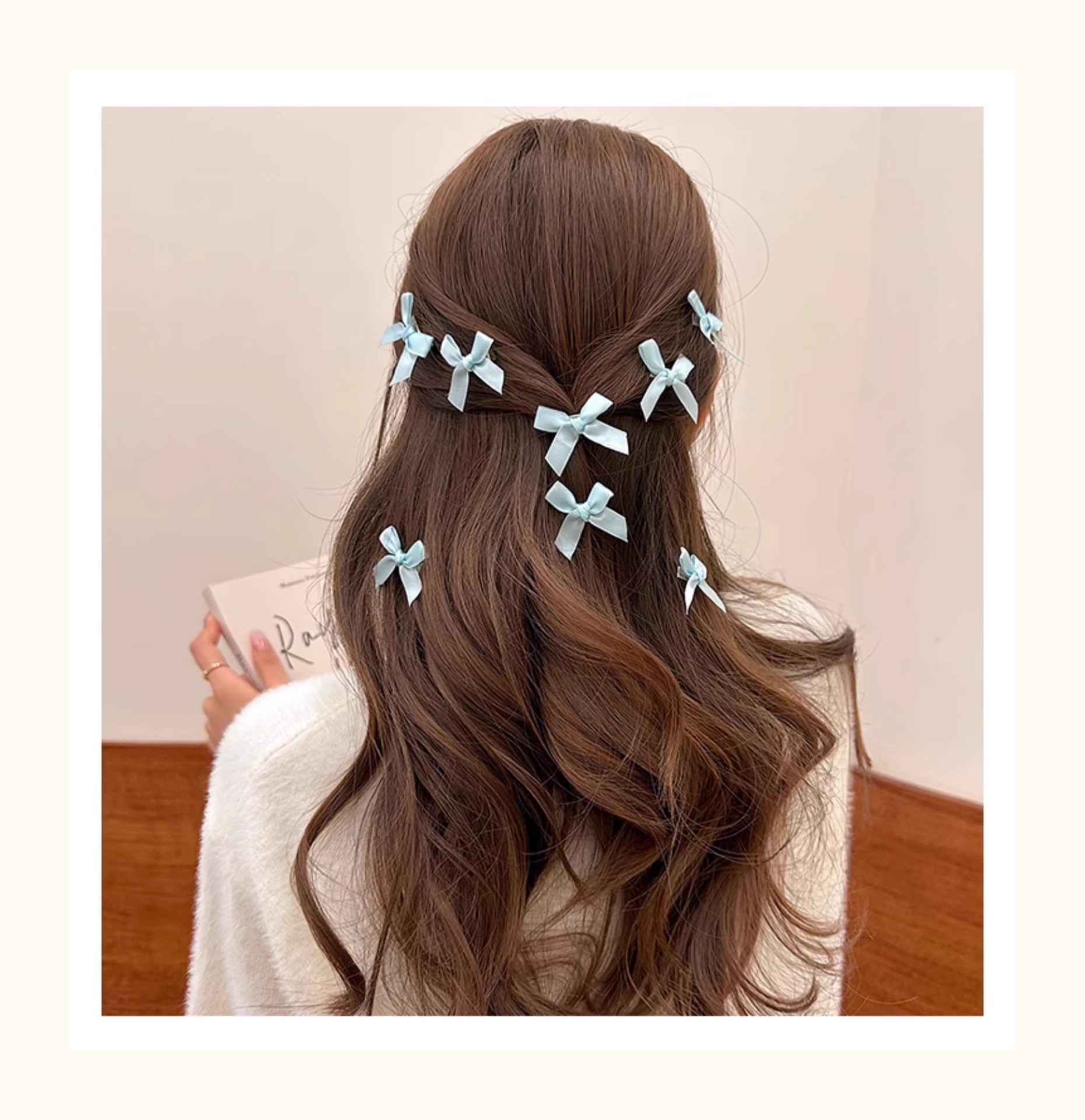 다채롭고 달콤하고 귀여운 리본 머리핀, 멀티 컬러 발레 스타일 리본 미니 덕빌 클립 헤어 액세서리 땋은 머리 머리 장식