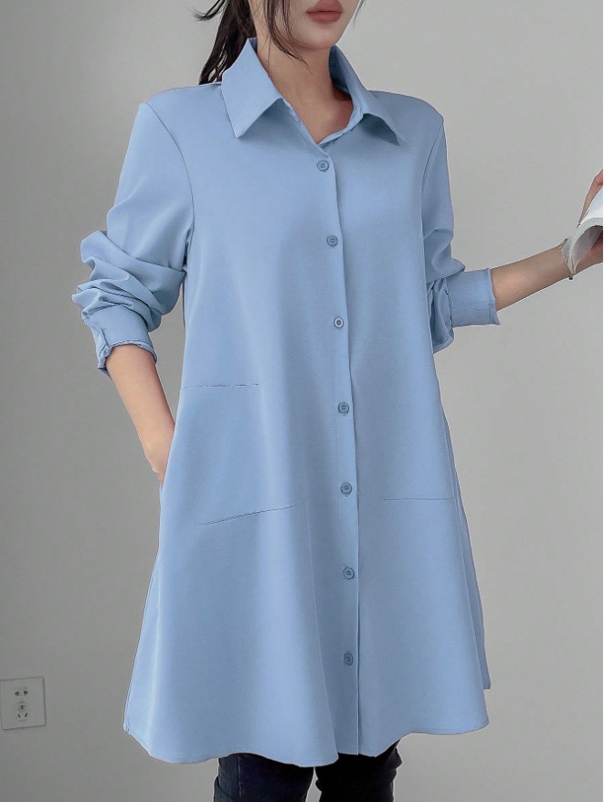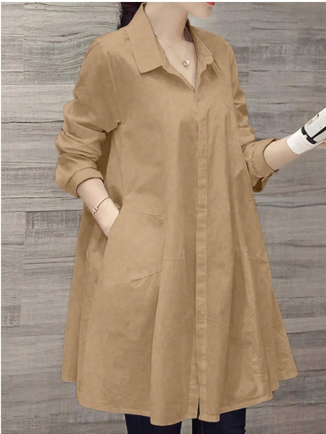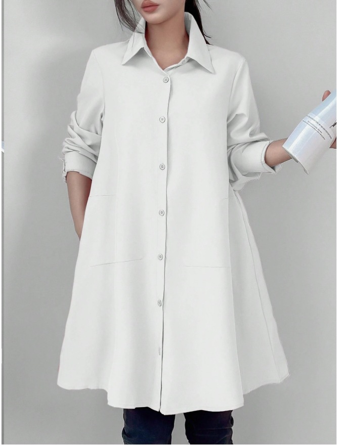 쉬폰 화이트 셔츠 여성 중간 길이 2025 봄, 가을 새로운 한국 스타일 대형 느슨한 긴팔 패션 다목적 셔츠스토어 가기