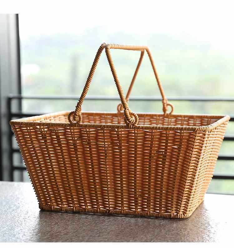 n모조 등나무 손으로 짠 쇼핑 바구니 휴대용 과일 바구니 일본 야채 바구니 Ke 야외 피크닉 바구니 야채 바구니스토어 가기
