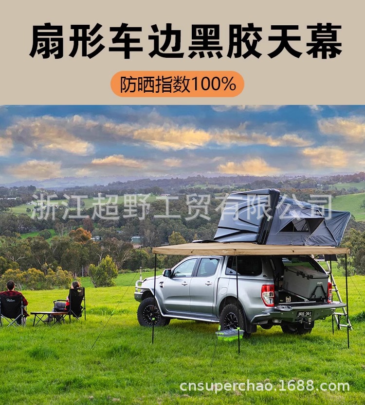 자동차 사이드 텐트 270도 팬형 회전형 캠핑용 알루미늄 합금 자외선 차단 및 방수 사이드 셰이드스토어 가기
