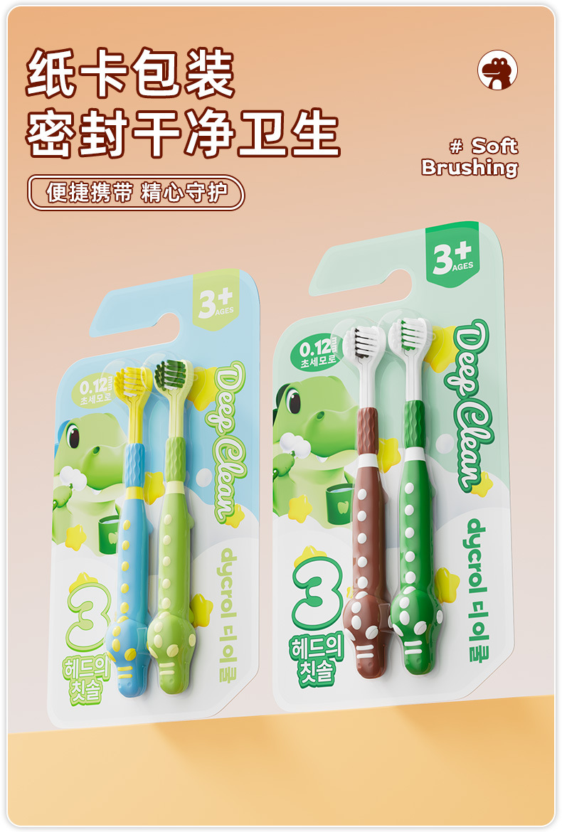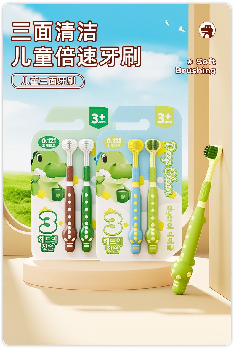 한국 다이케 어린이용 칫솔 3면 3D 입체 부드러운 칫솔 포장으로 잇몸을 깨끗하게 관리하고 귀여운 3면 칫솔