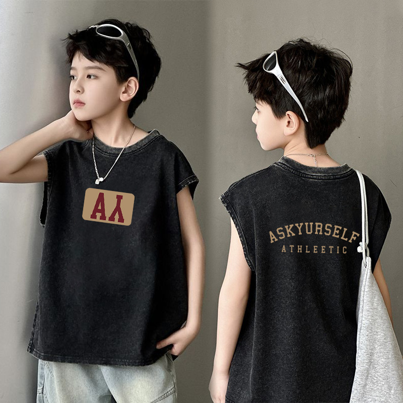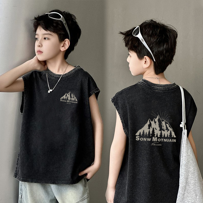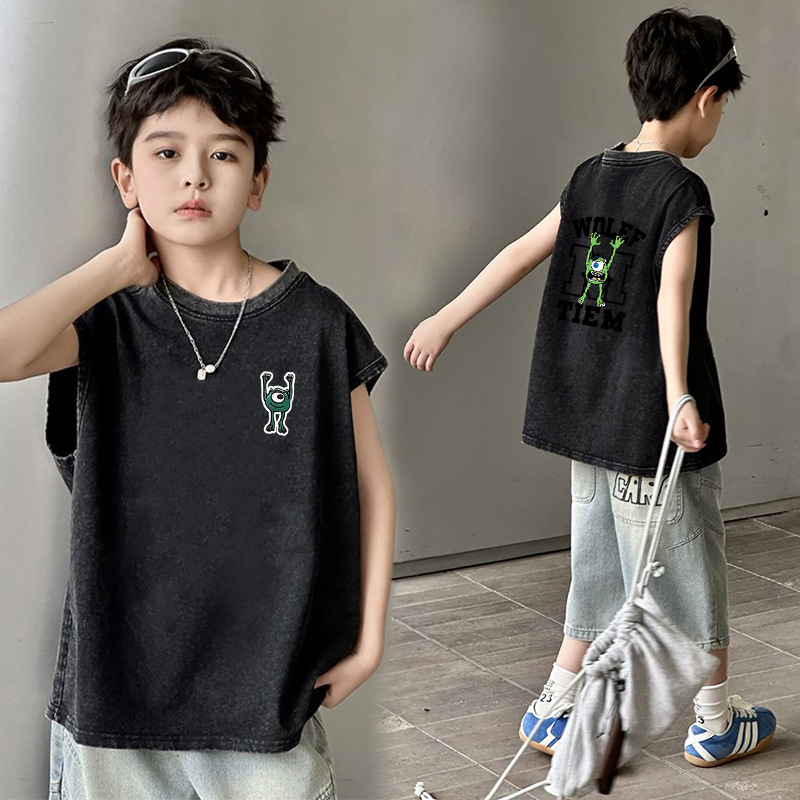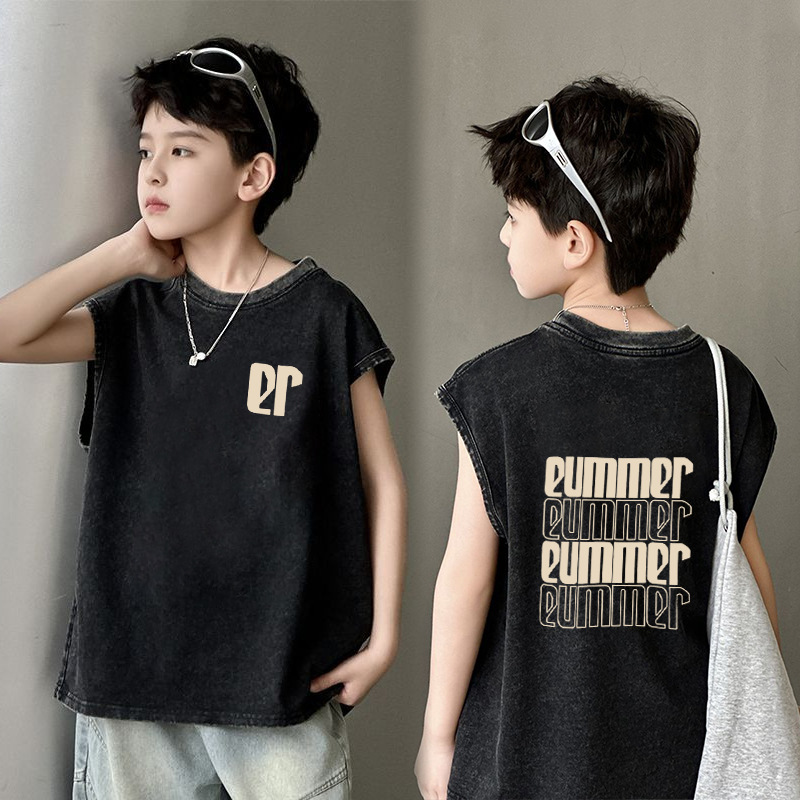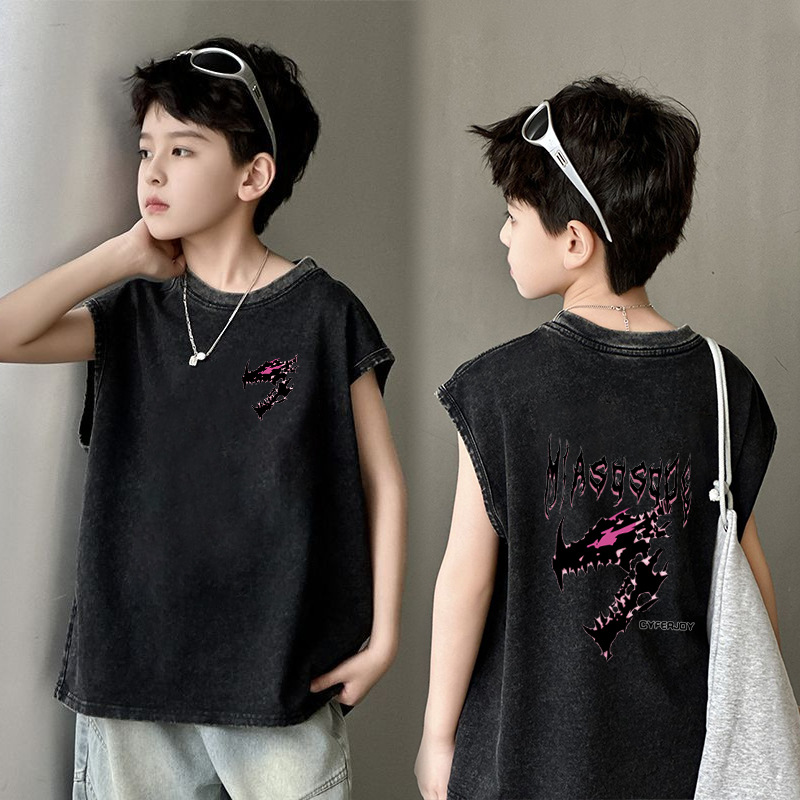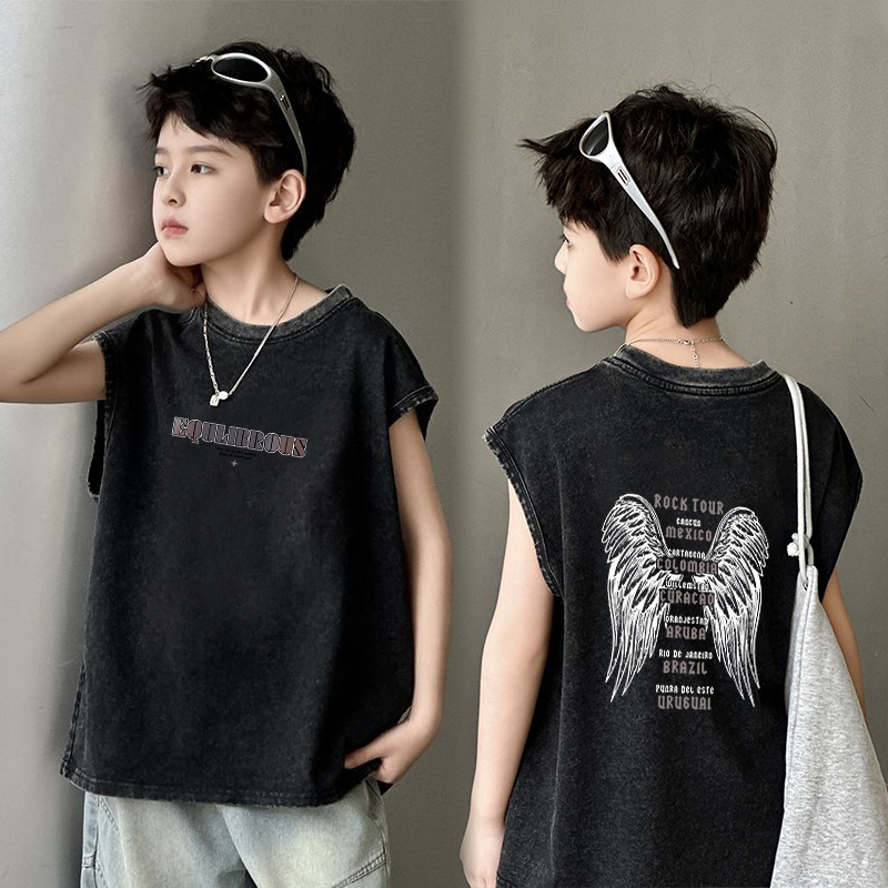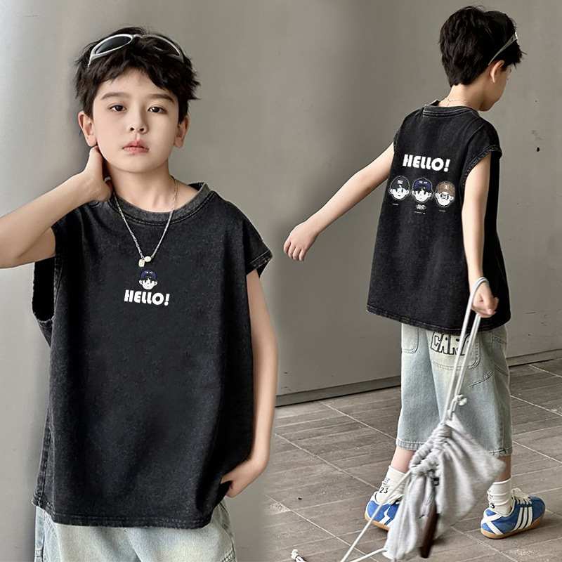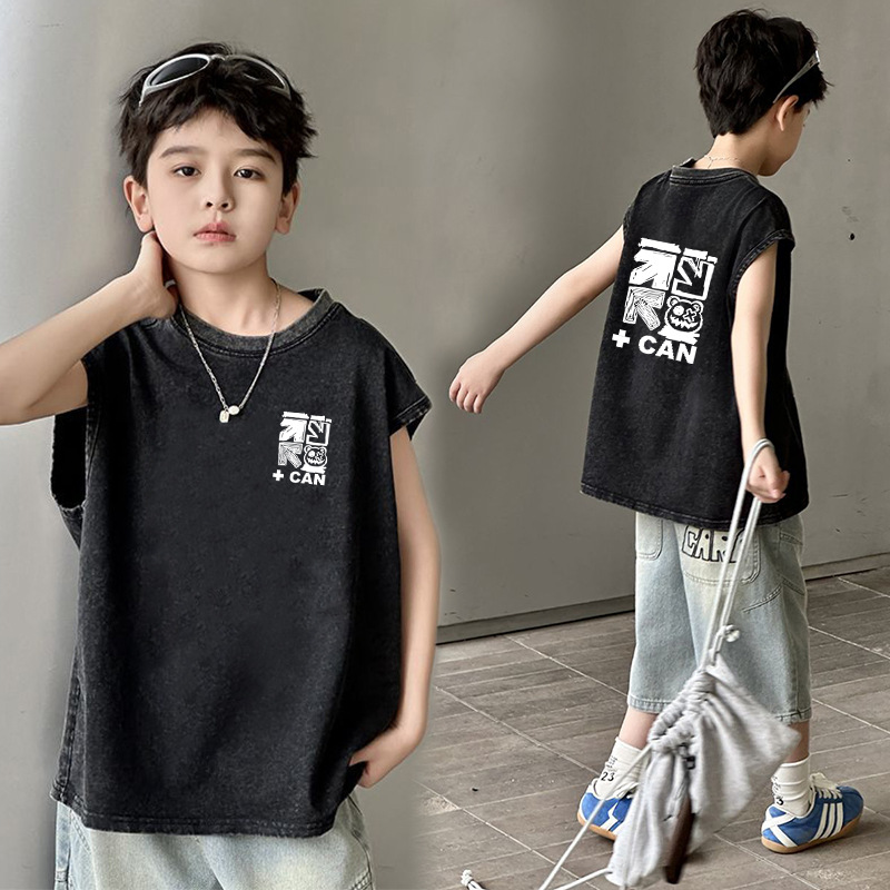 남아용 순면 워싱 조끼, 중대형 아동용 6-12 탑 여름 민소매 티셔츠 캐주얼 루즈 바닥 셔츠 트렌디스토어 가기