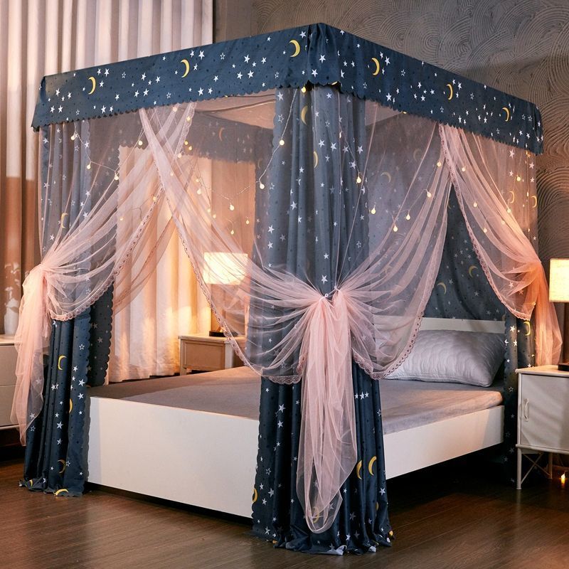 공주풍 침대 커튼, 차광, 방진, 프라이버시 방지, 완전 밀폐형, 두꺼운 가정용 침대 커튼, 바닥부터 천장까지 모기장, 브래킷 일체형