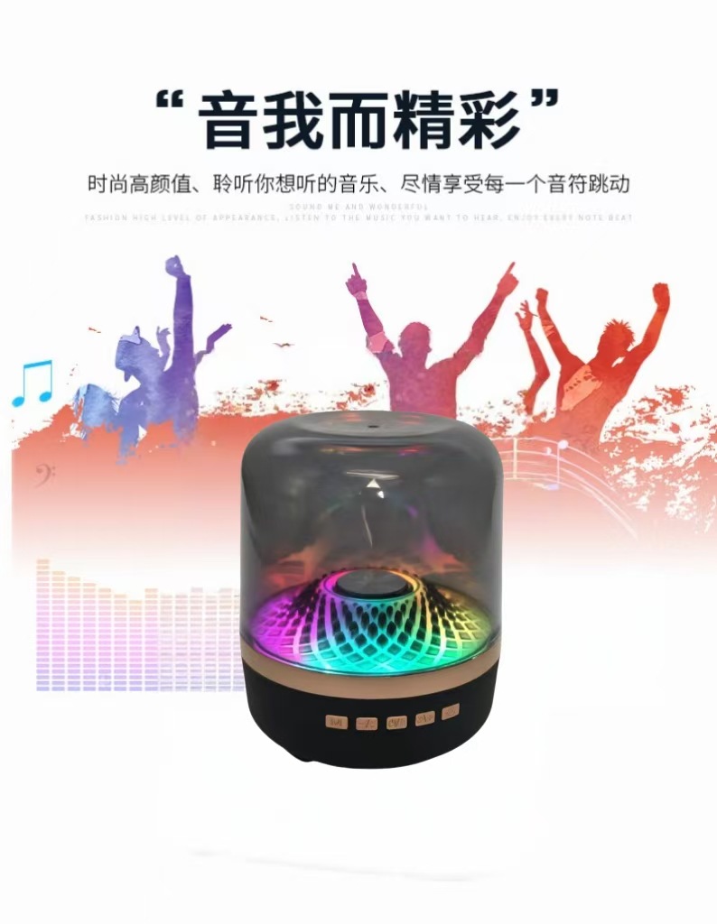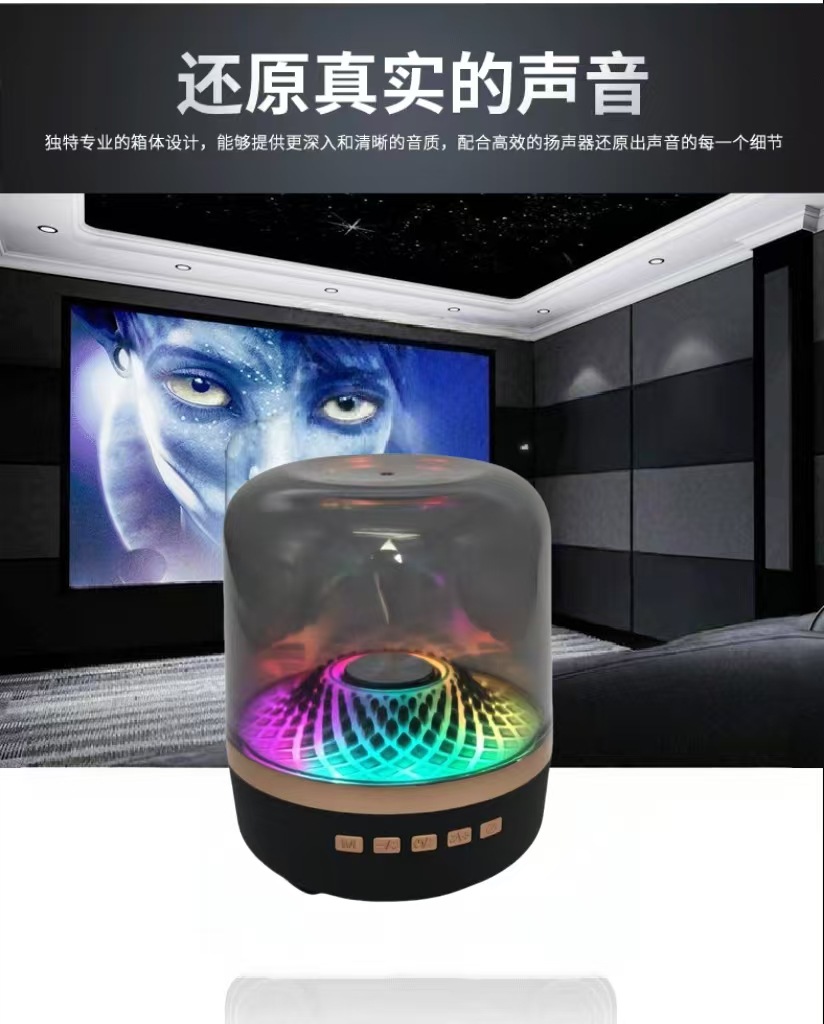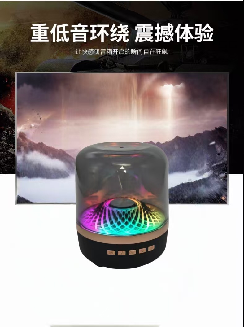 새로운 유리 블루투스 스피커 고출력 서브 우퍼 무선 야외 휴대용 빛나는 다채로운 빛 블루투스 스피커스토어 가기
