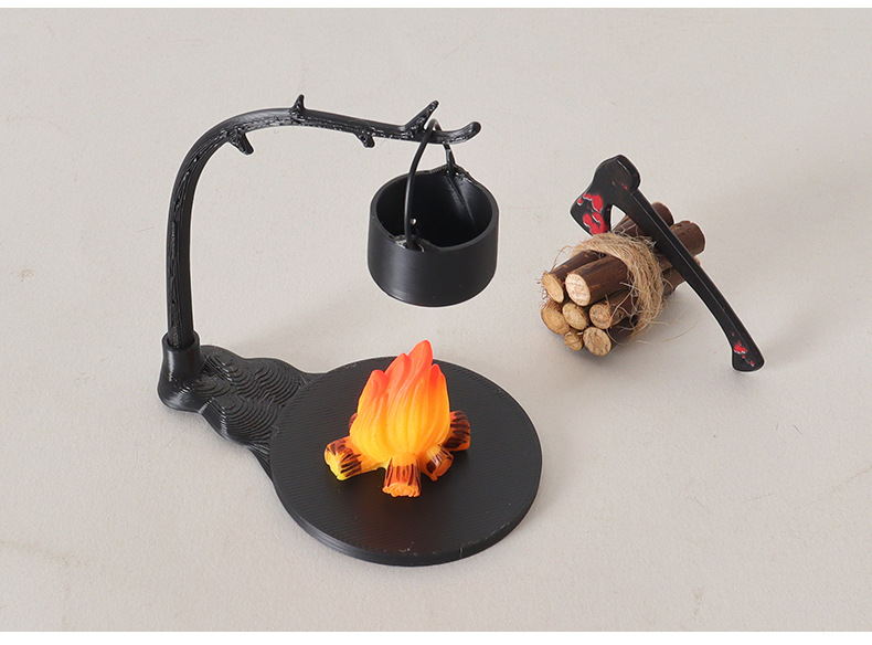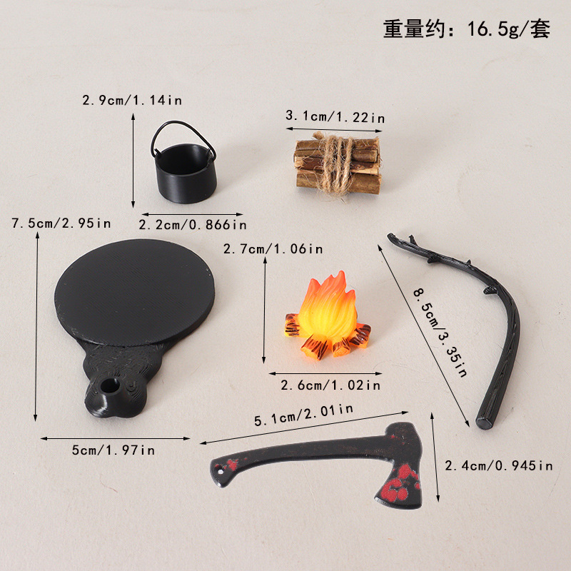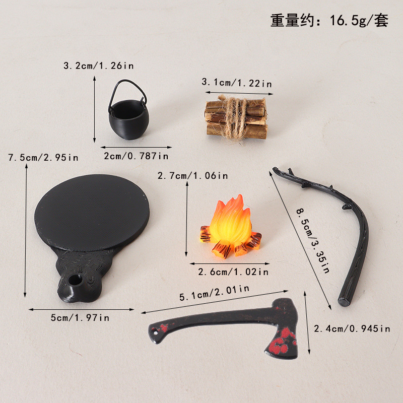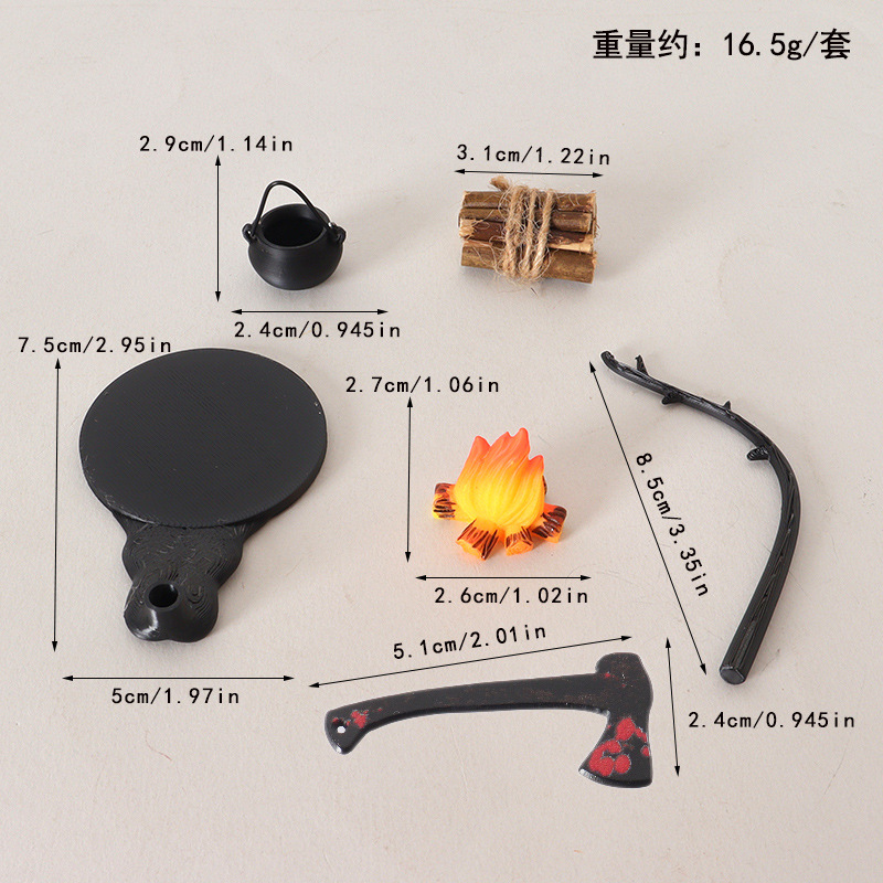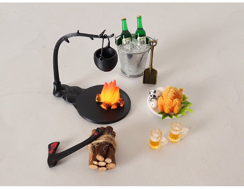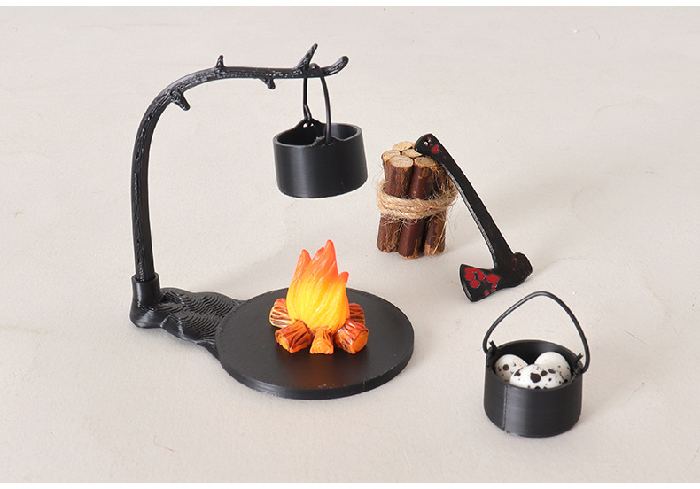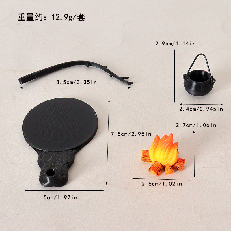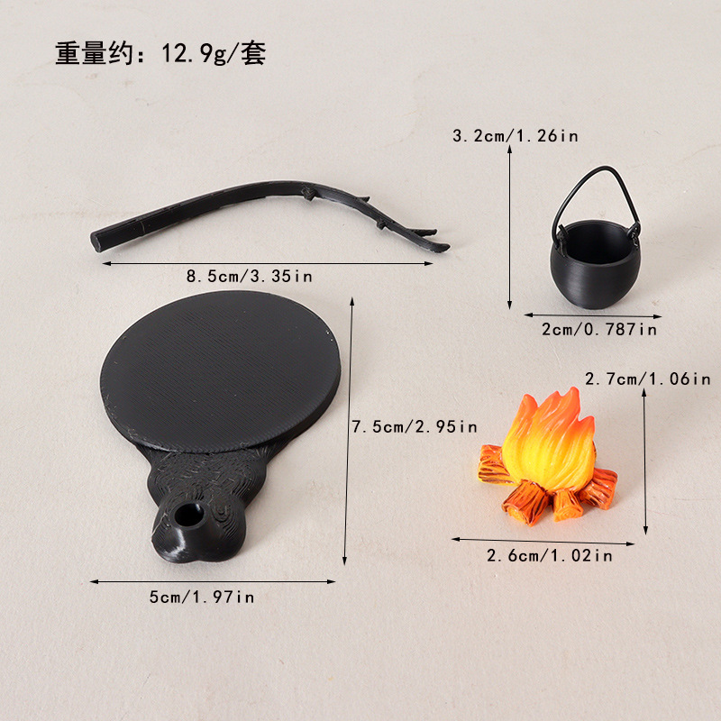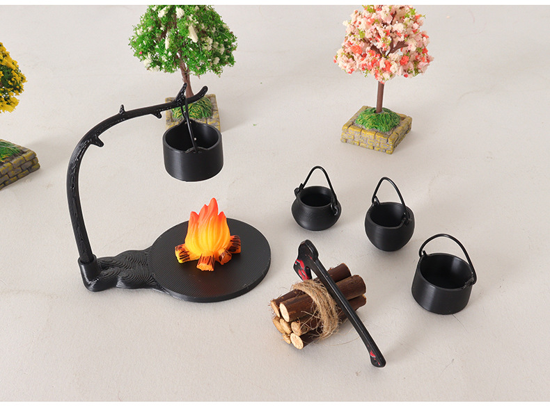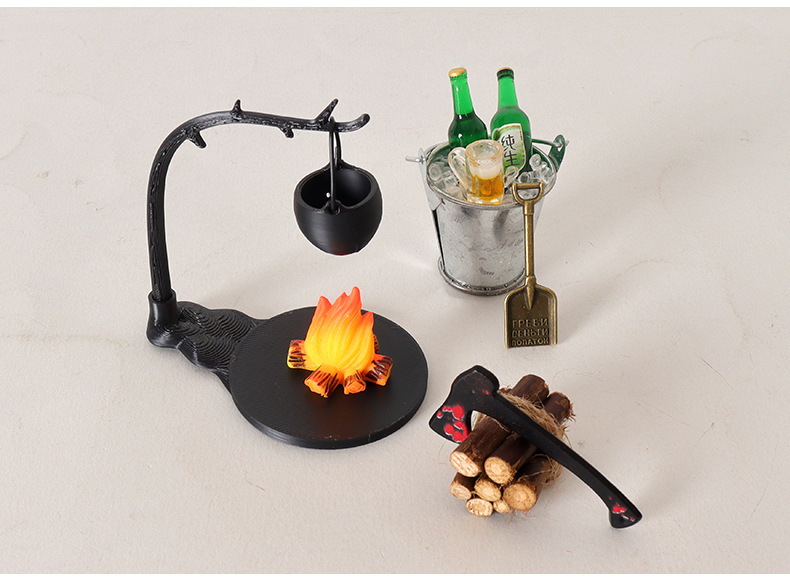 인형 집 미니 야외 목가적 피크닉 모닥불 스토브 냄비 장작 불꽃 1/12 시뮬레이션 크리스마스 장면 야외스토어 가기