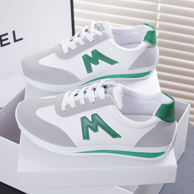 대외 무역 컬러 매칭 포레스트 검프 신발 여성 2025 봄, 가을 가죽 레이스 업 러닝 화이트 신발 복고풍 캐주얼 스포츠 신발스토어 가기