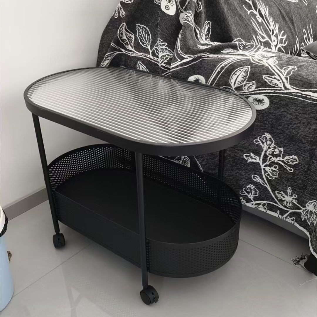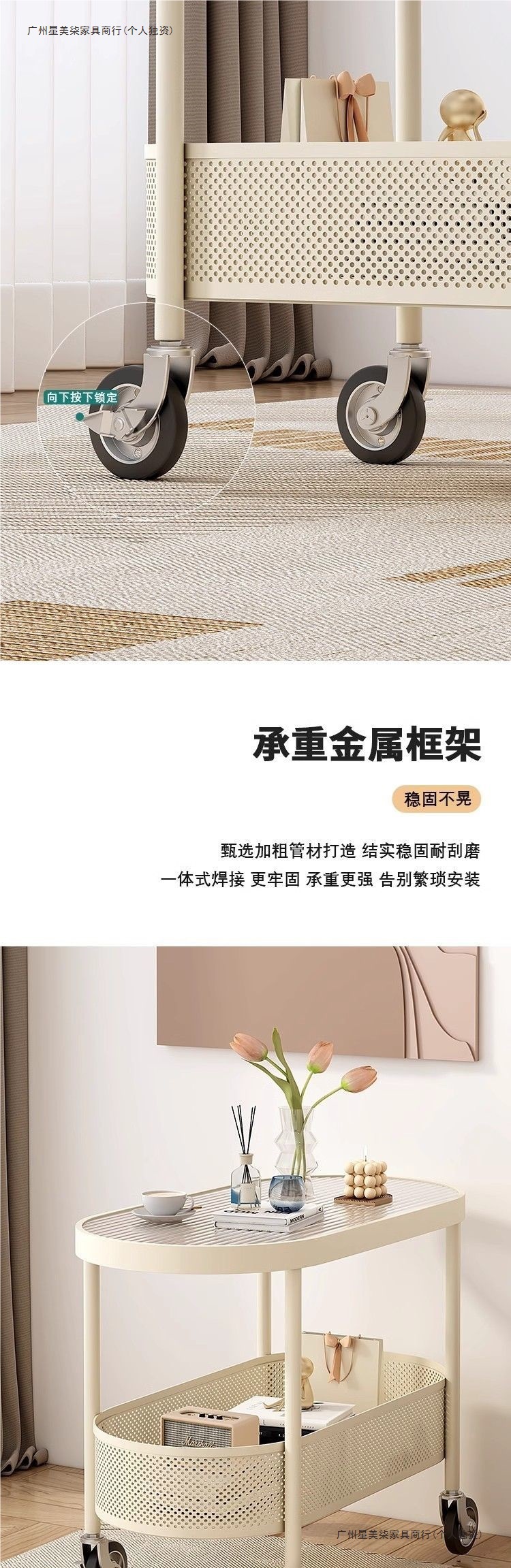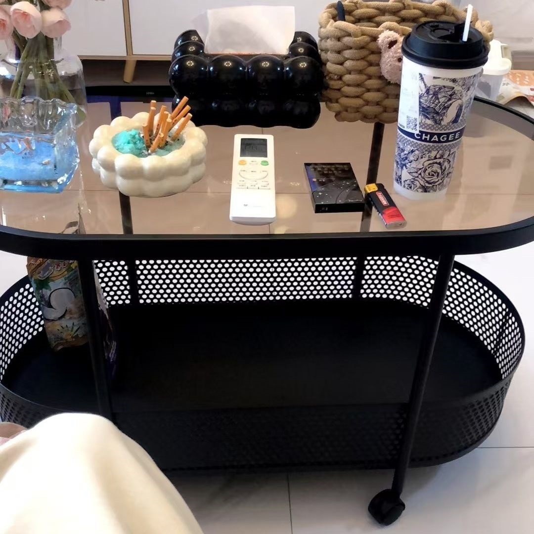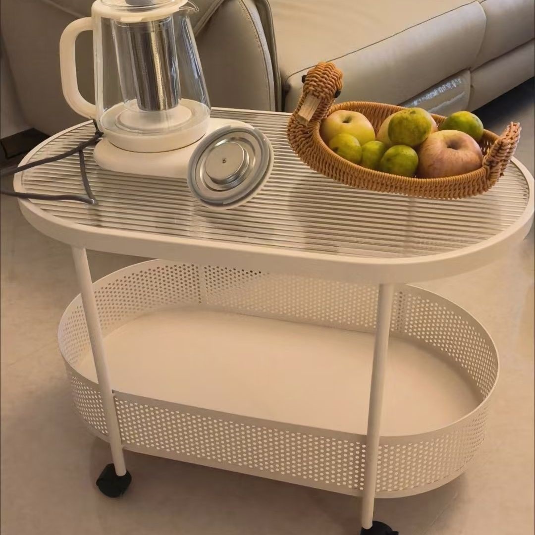 크림 스타일 현대적인 작은 아파트 거실 모바일 커피 테이블 소파 사이드 유리 바퀴가 달린 간단한 스토리지 트롤리