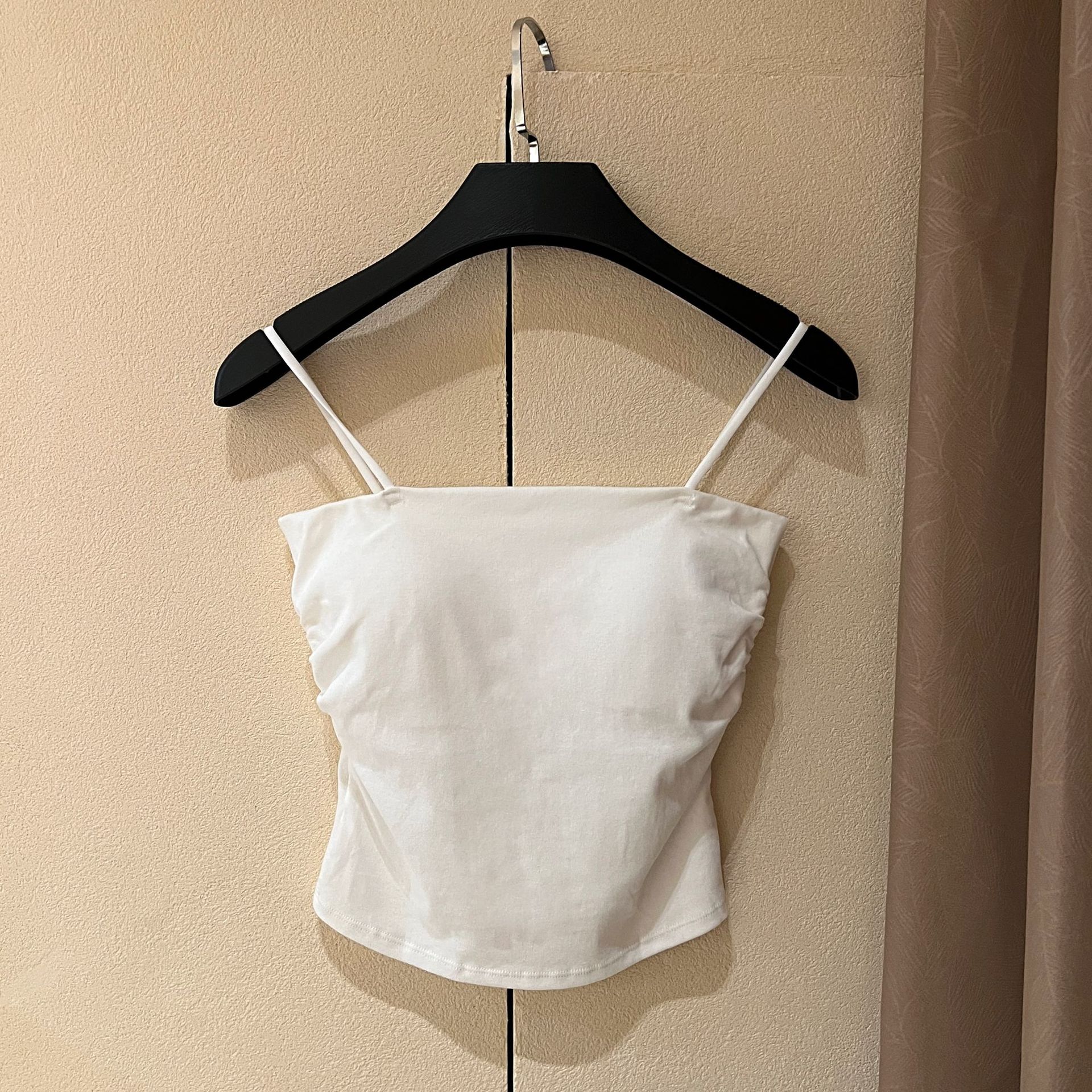 인기있는 원라인 칼라 솔리드 컬러 아름다운 백 캐미솔 올인원 가슴 패드 주름 슬리밍 순수 코튼 튜브 탑 여성용 속옷스토어 가기