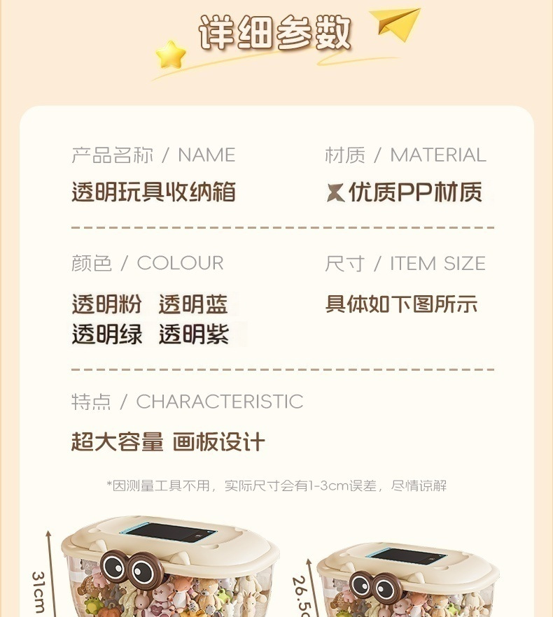 어린이 장난감 수납함, 의류 및 생활용품 보관함, 방진 만화 캐릭터 수납함 - LCD 필기판 증정