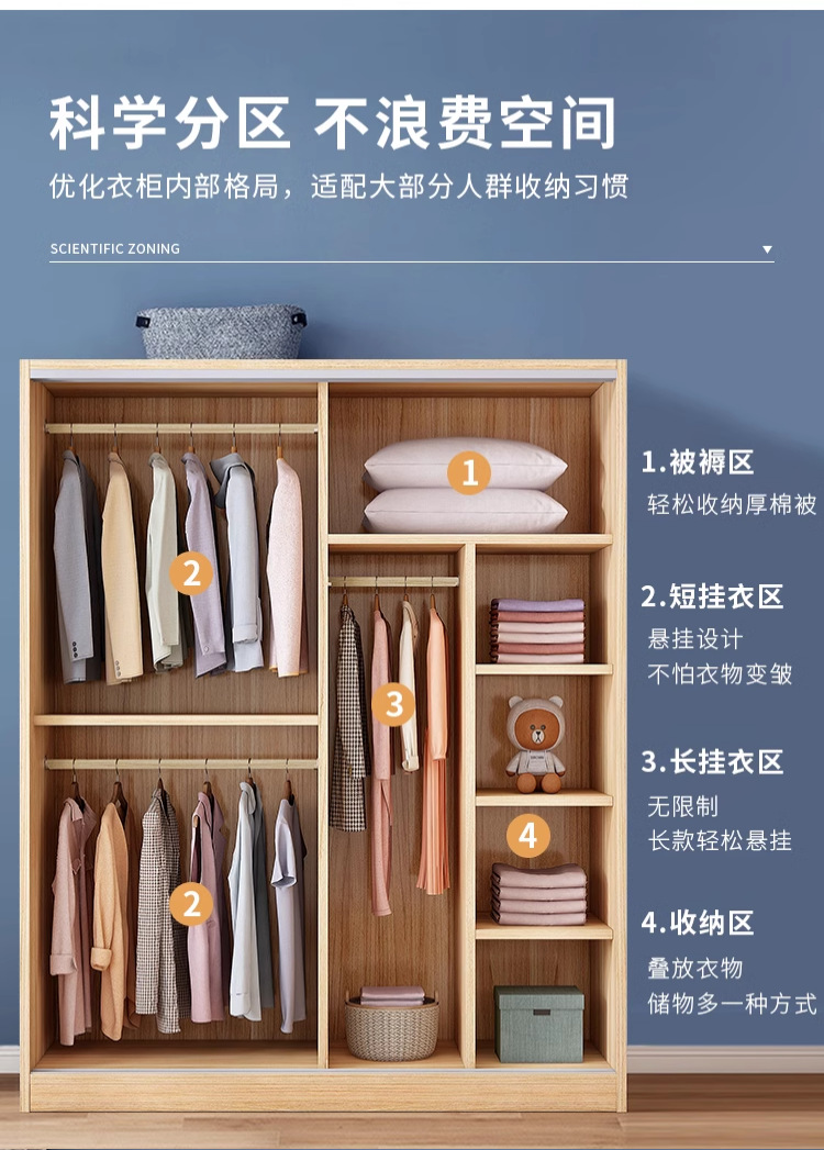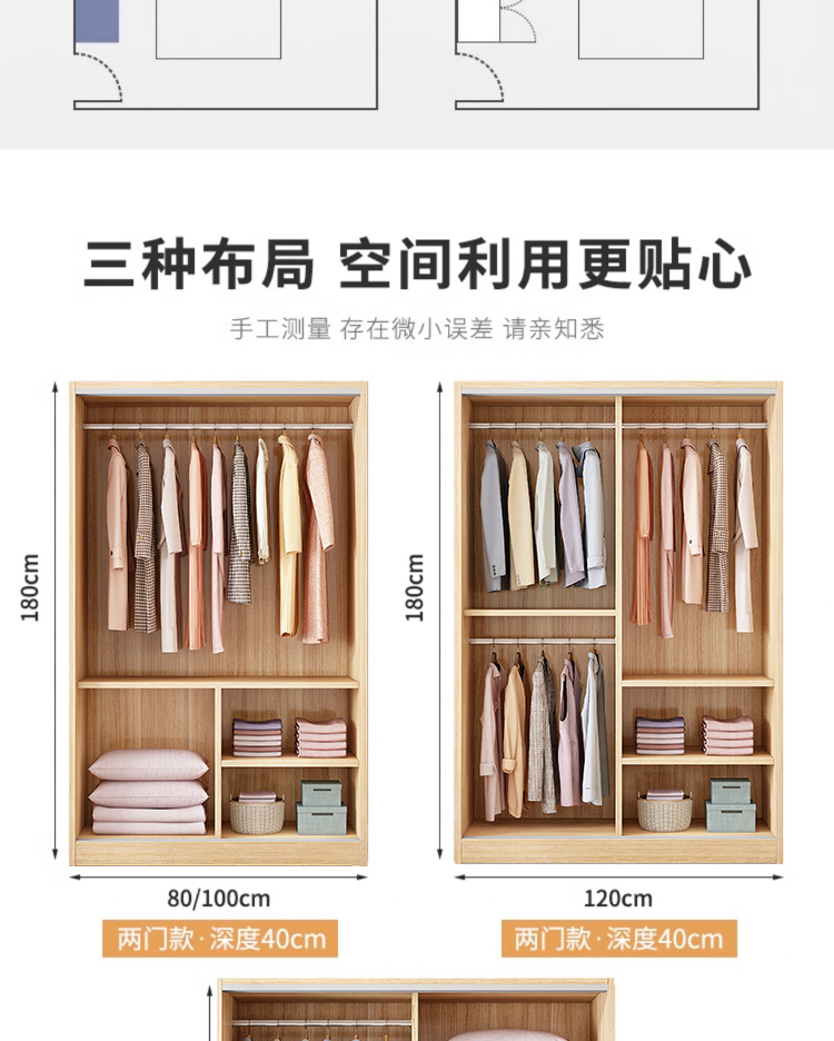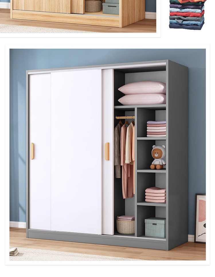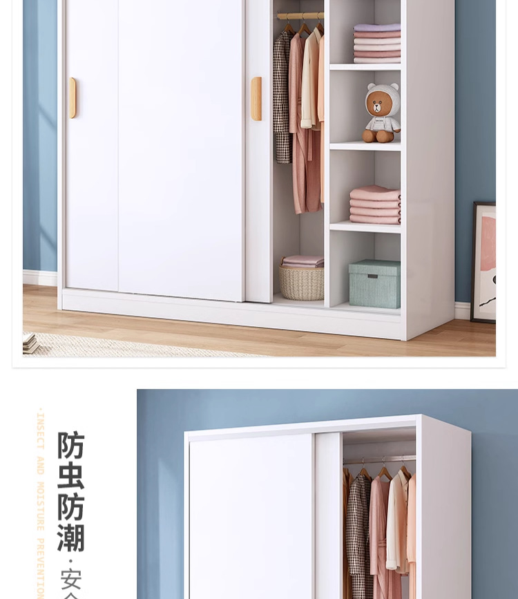 옷장 홈 침실 양문형 어린이 수납 캐비닛 경제적 인 간단한 목재 조립 옷장 임대실