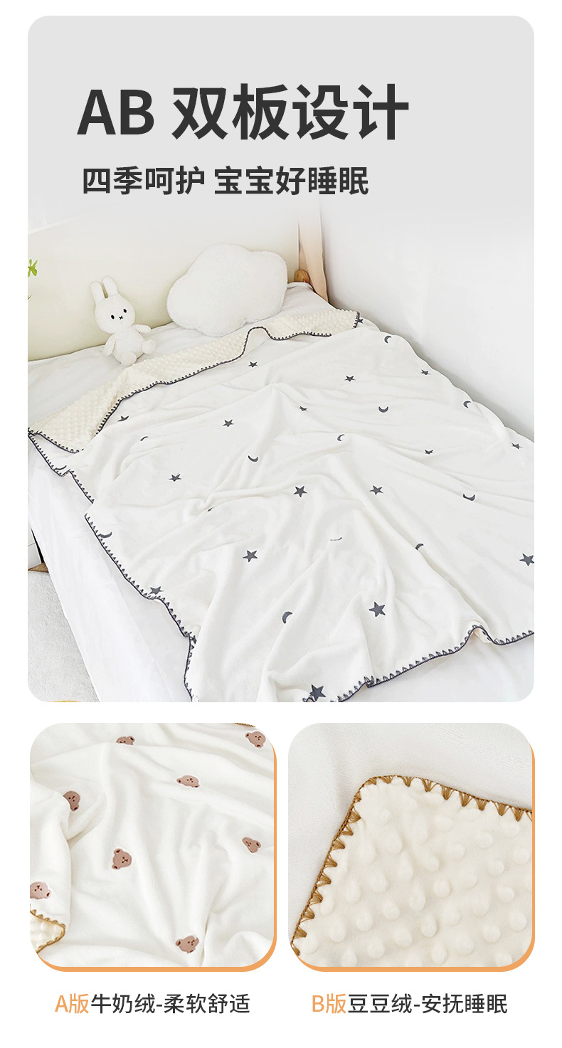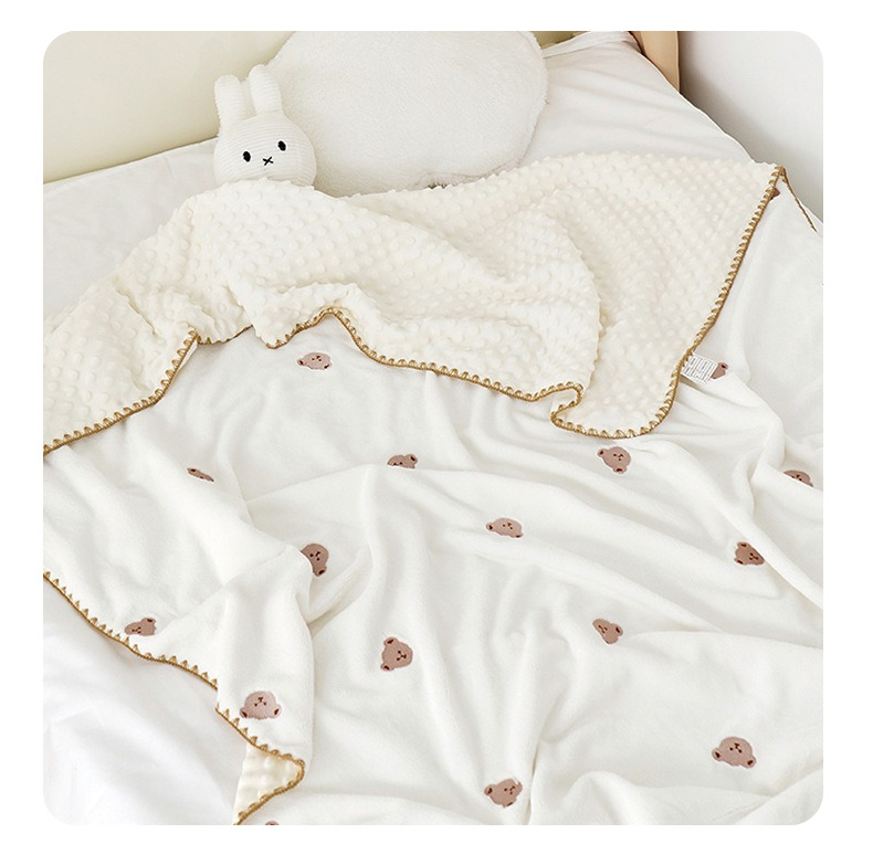 우유 벨벳 콩모양 담요 자수 곰돌이 쉘 엣지 아기 담요 어린이 낮잠 담요 유아용 담요스토어 가기