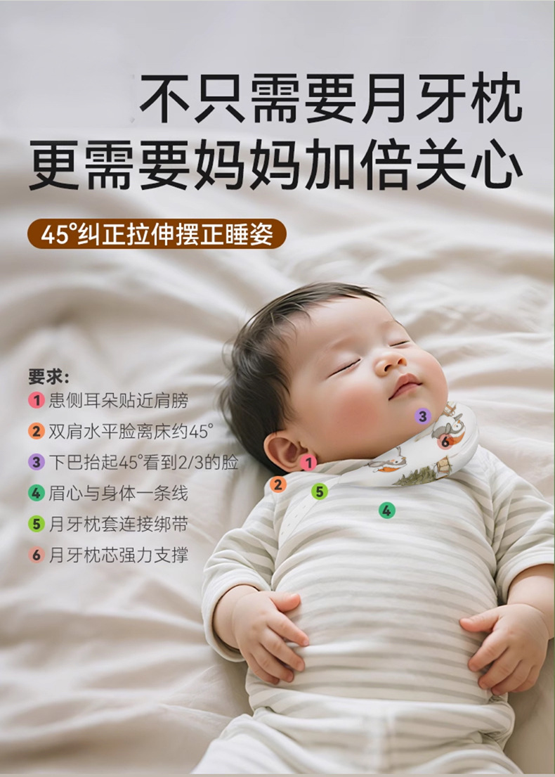아기 경사목 교정기 초승달 베개 어린이 아기 목 휘어짐 교정 베개 편두통 목 지지대 신생아 성형 베개