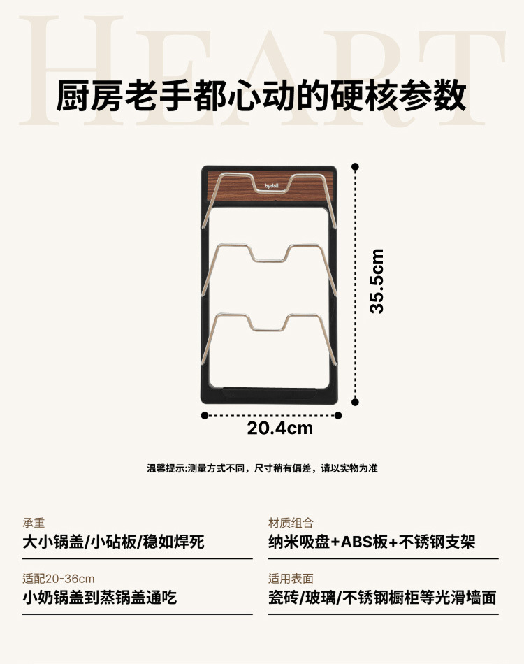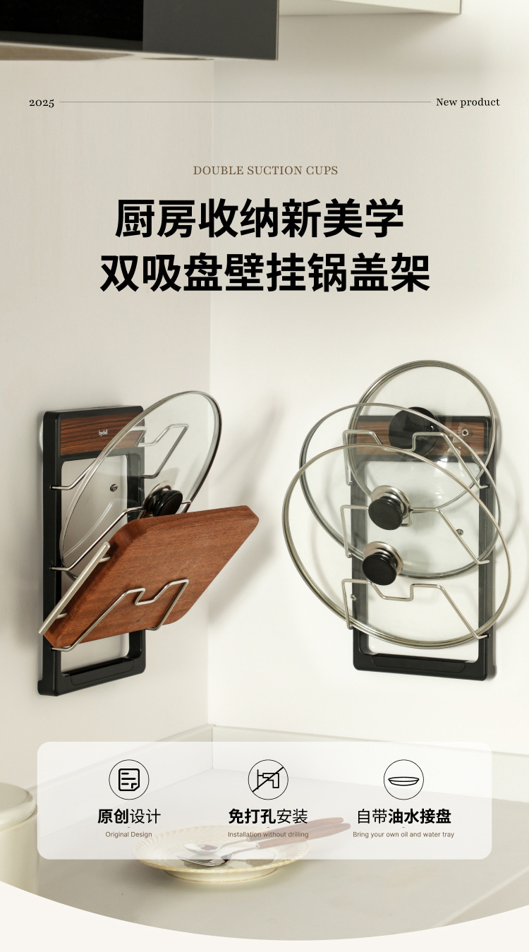 • 월넛컬러 흡착컵 냄비뚜껑 거치대 [3단수납]