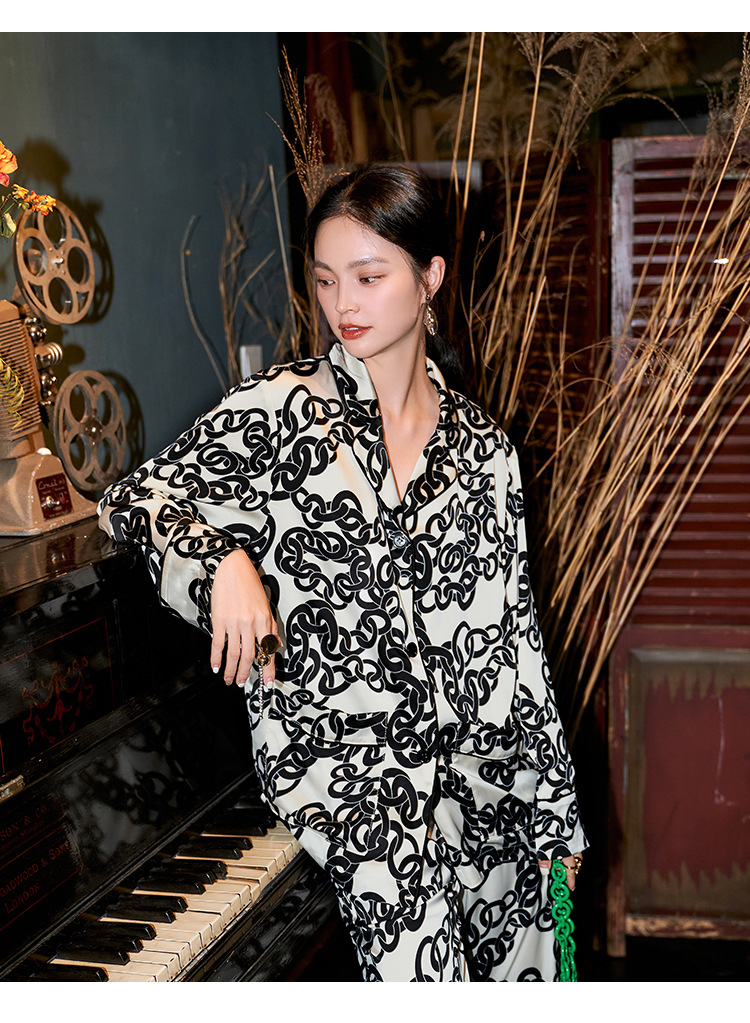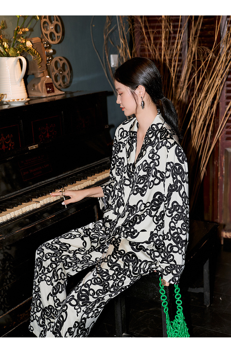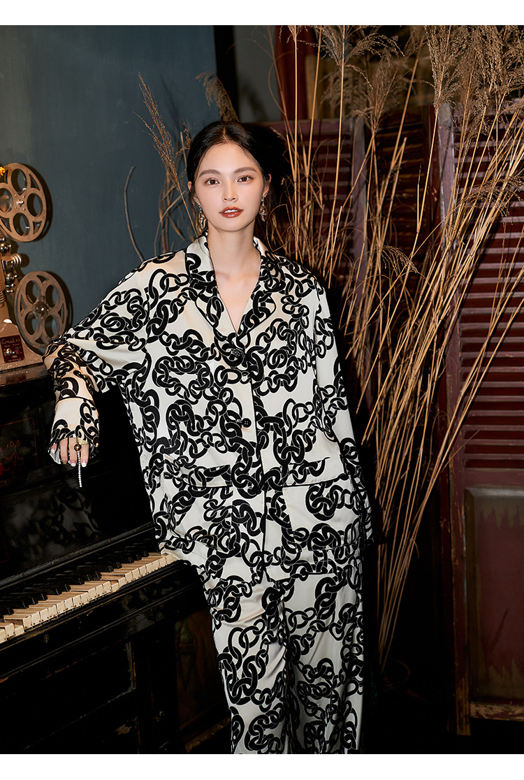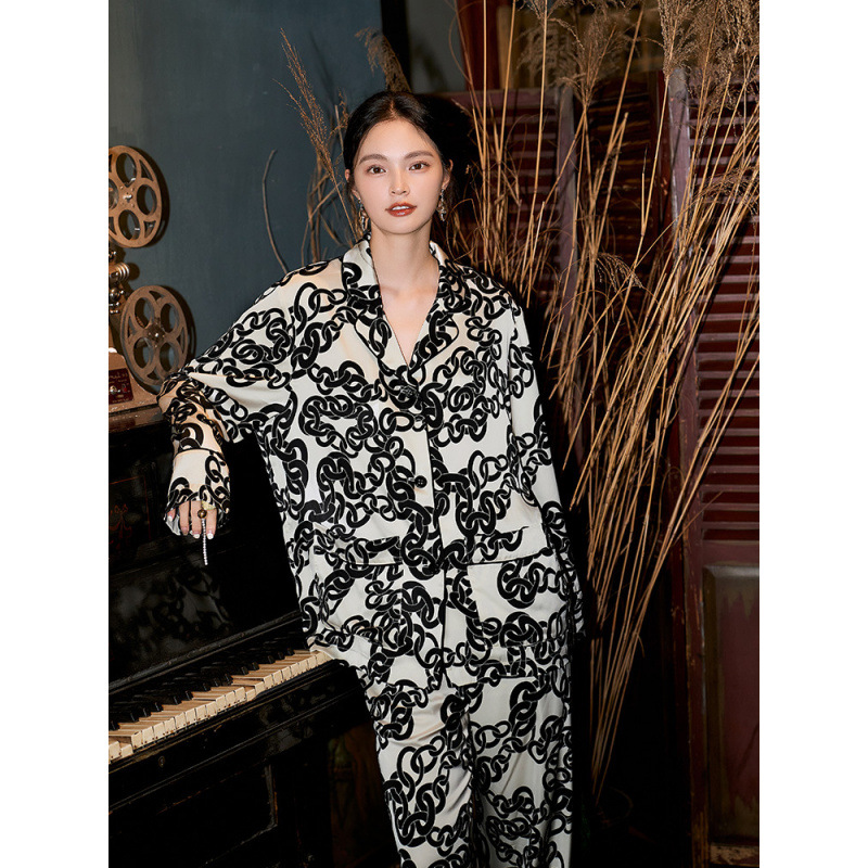 여성을 위한 새로운 캐주얼 부드럽고 촘촘한 얼음 실크 잠옷, 2025년 봄과 가을, 패셔너블하고 고급스러운, 거리에서 착용할 수 있는 가정복스토어 가기