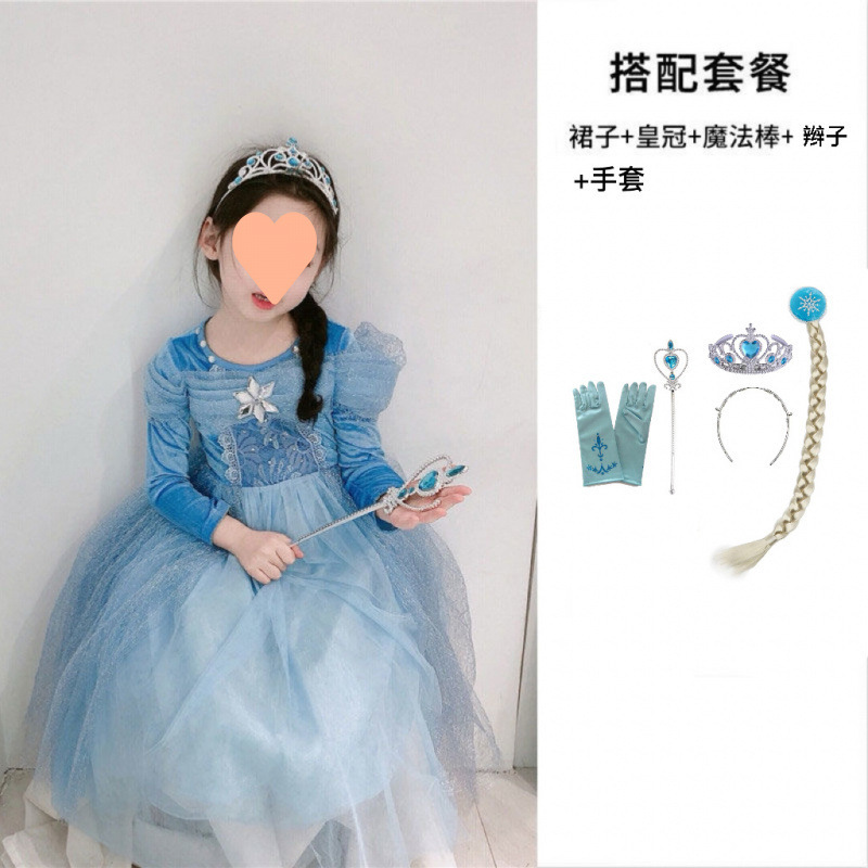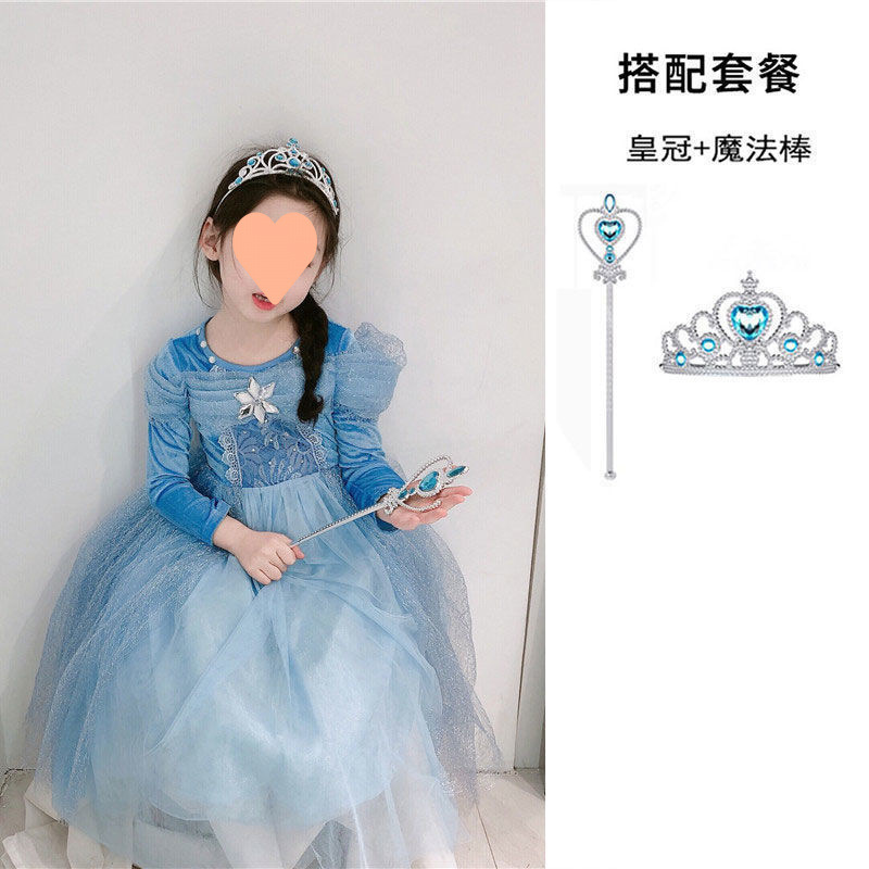 겨울왕국 엘사 공주 드레스 여자 거즈 스커트 어린이 드레스 엘사 긴팔 드레스 공연 의상 봄 드레스