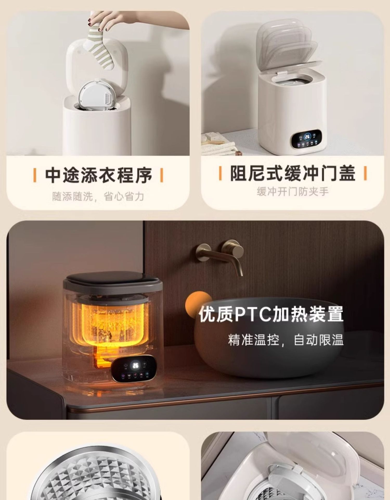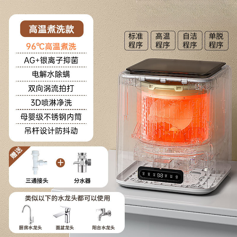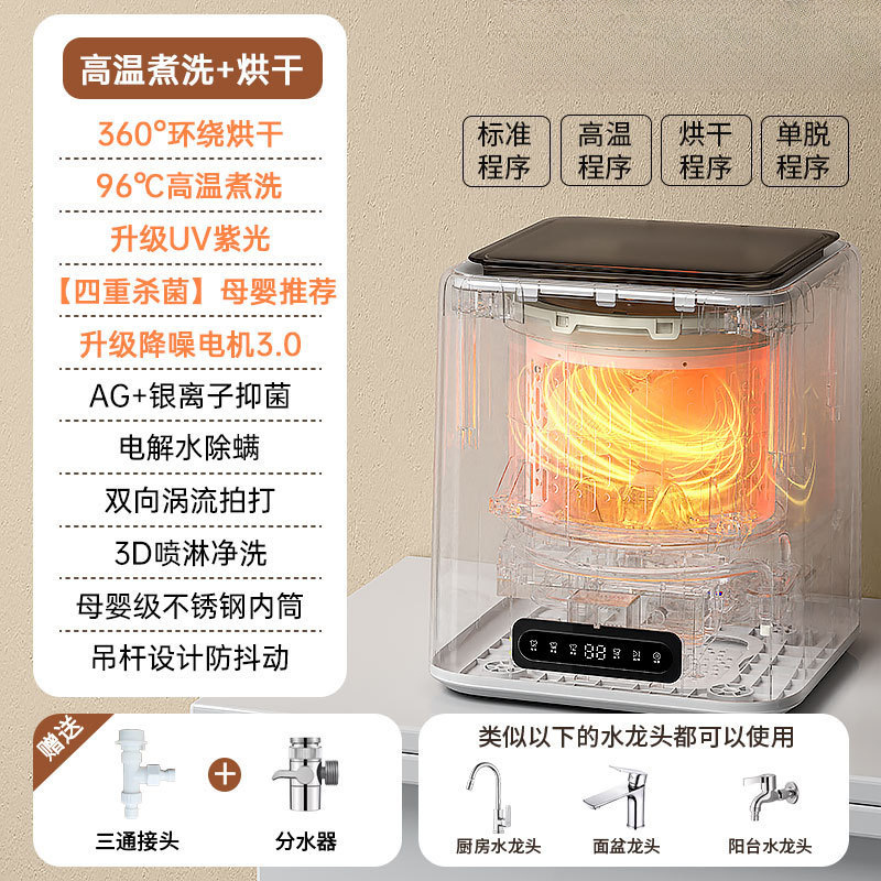 완전 자동 속옷 세탁기, 미니 소형 특수 양말 세탁기, 고온 삶기, 세탁, 탈착 및 건조 올인원 속옷 세탁기