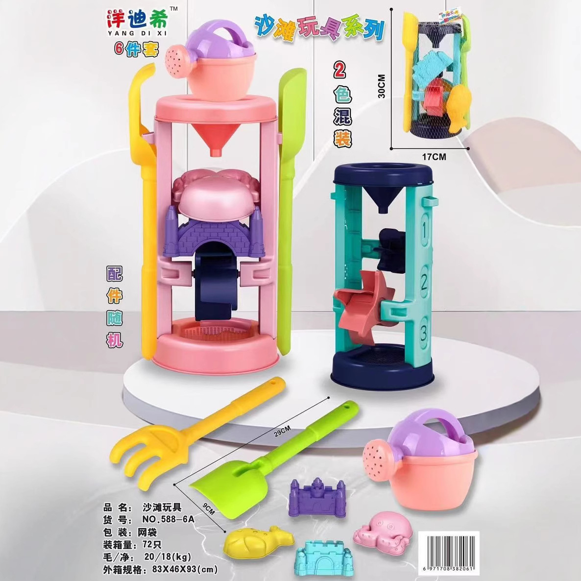 588-6A 모래 빨대 주전자 해변 삽 6피스 세트 어린이 여름 야외 명소 해변 물 장난감