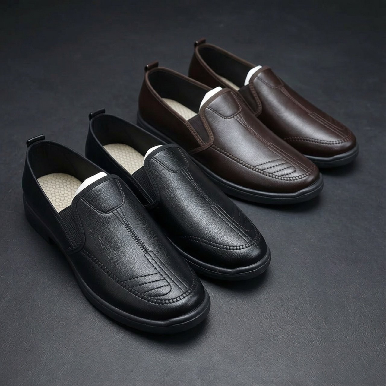 새로운 2025 남성용 가죽 신발, 부드러운 밑창, 부드러운 표면, 비즈니스 캐주얼 신발, 중년 및 노인 아빠 신발, 세련된 운전 신발