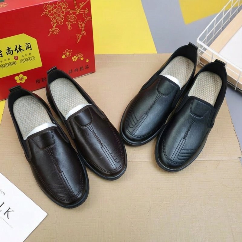 새로운 2025 남성용 가죽 신발, 부드러운 밑창, 부드러운 표면, 비즈니스 캐주얼 신발, 중년 및 노인 아빠 신발, 세련된 운전 신발스토어 가기