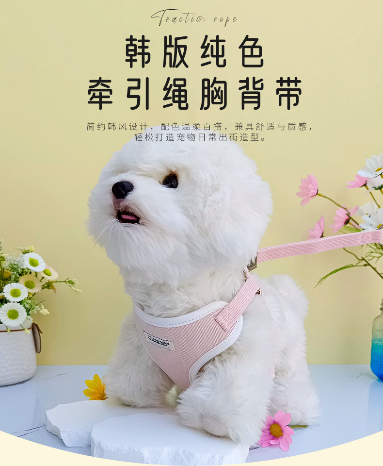 엄선된 하네스 조끼 스타일의 이탈 방지 단색 중소형 개 애완동물 용품 여름 견인 로프 공장 도매