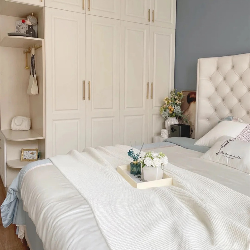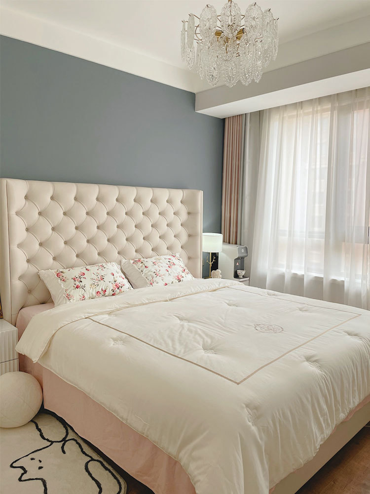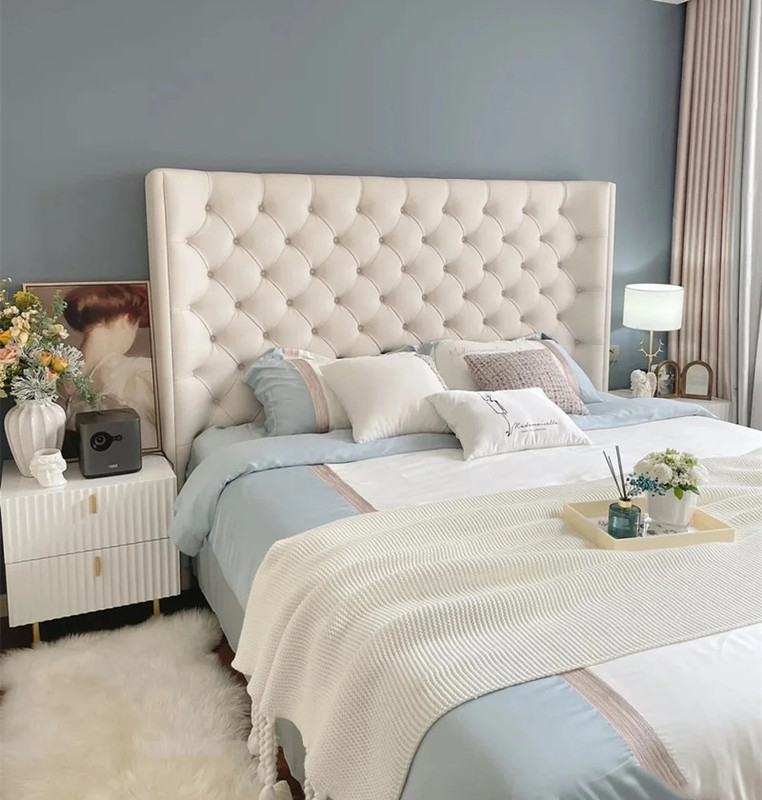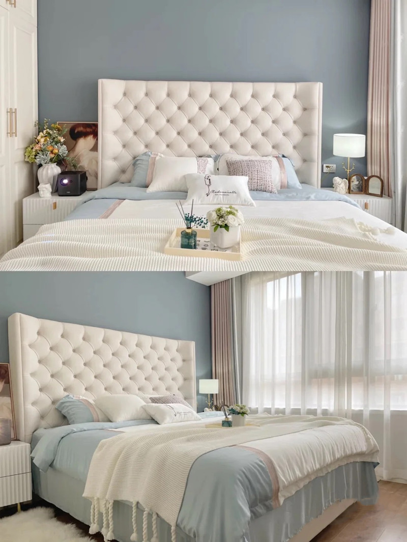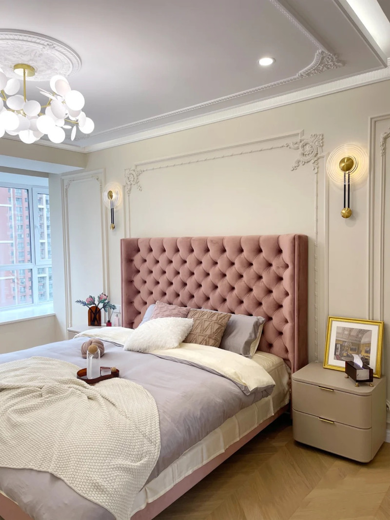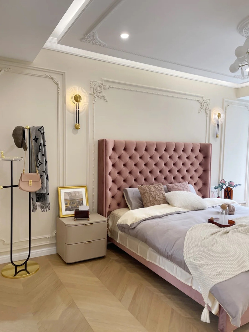 아메리칸 라이트 럭셔리 테크놀로지 패브릭 더블 침대 모던 심플 마스터 침실 하이백 침대 북유럽 인터넷 연예인 버클 벨벳 웨딩 침대스토어 가기