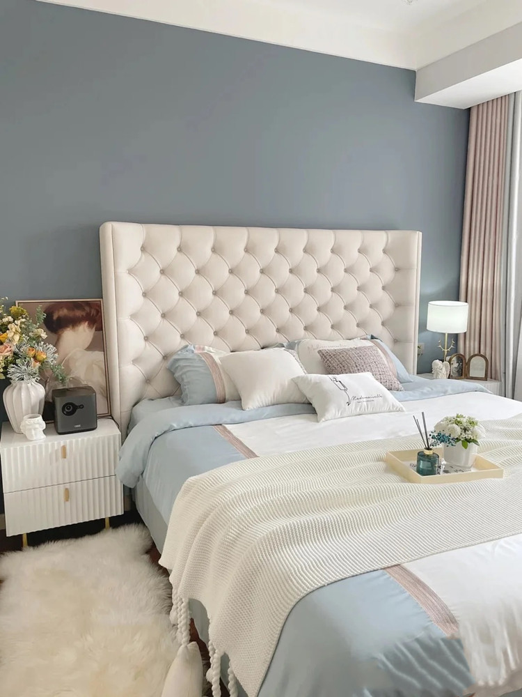 아메리칸 라이트 럭셔리 테크놀로지 패브릭 더블 침대 모던 심플 마스터 침실 하이백 침대 북유럽 인터넷 연예인 버클 벨벳 웨딩 침대