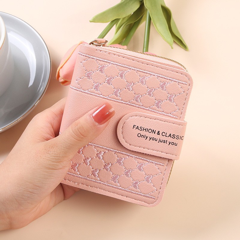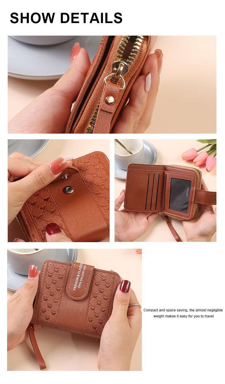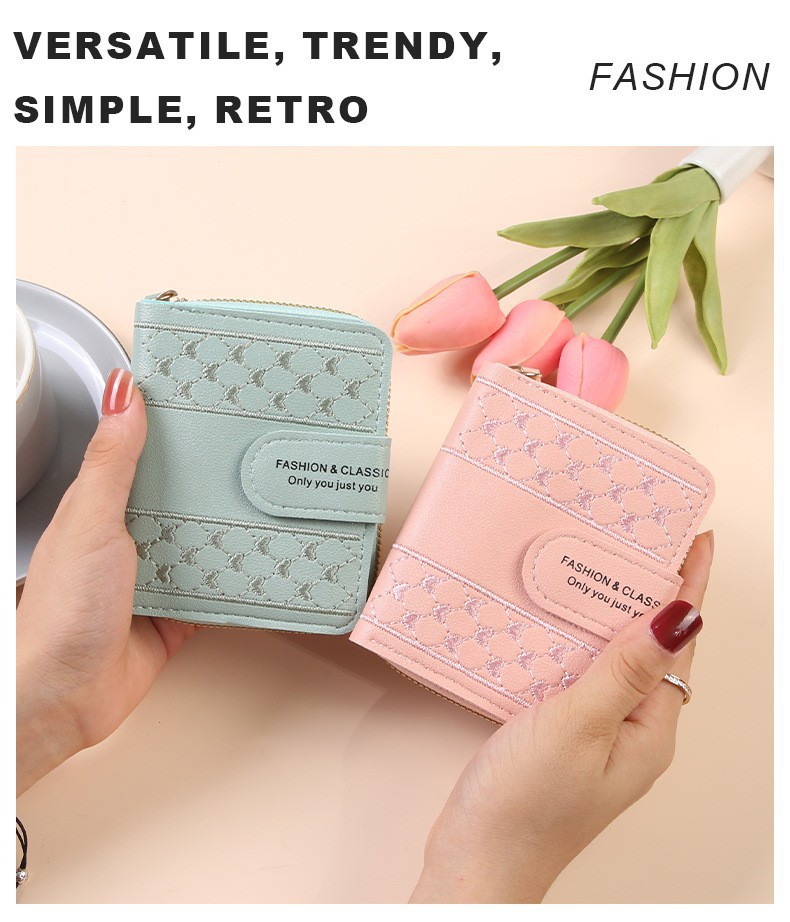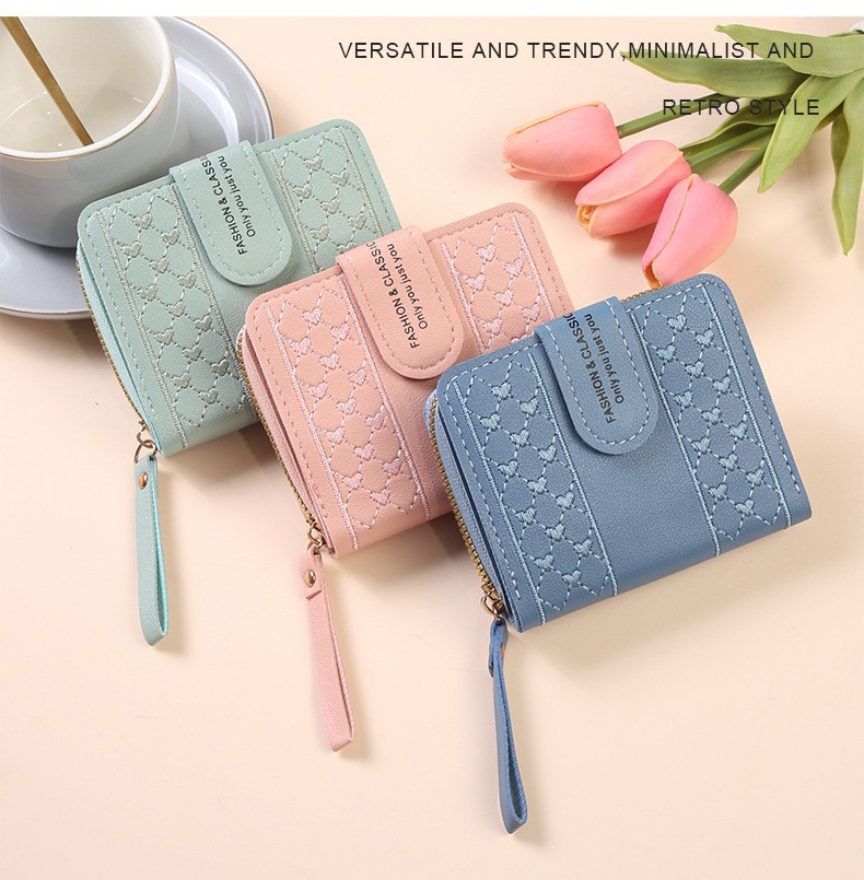2025 새로운 여성 지갑 짧은 지퍼 대용량 동전 지갑 다목적 사랑 컬러 클러치 백 카드 홀더스토어 가기