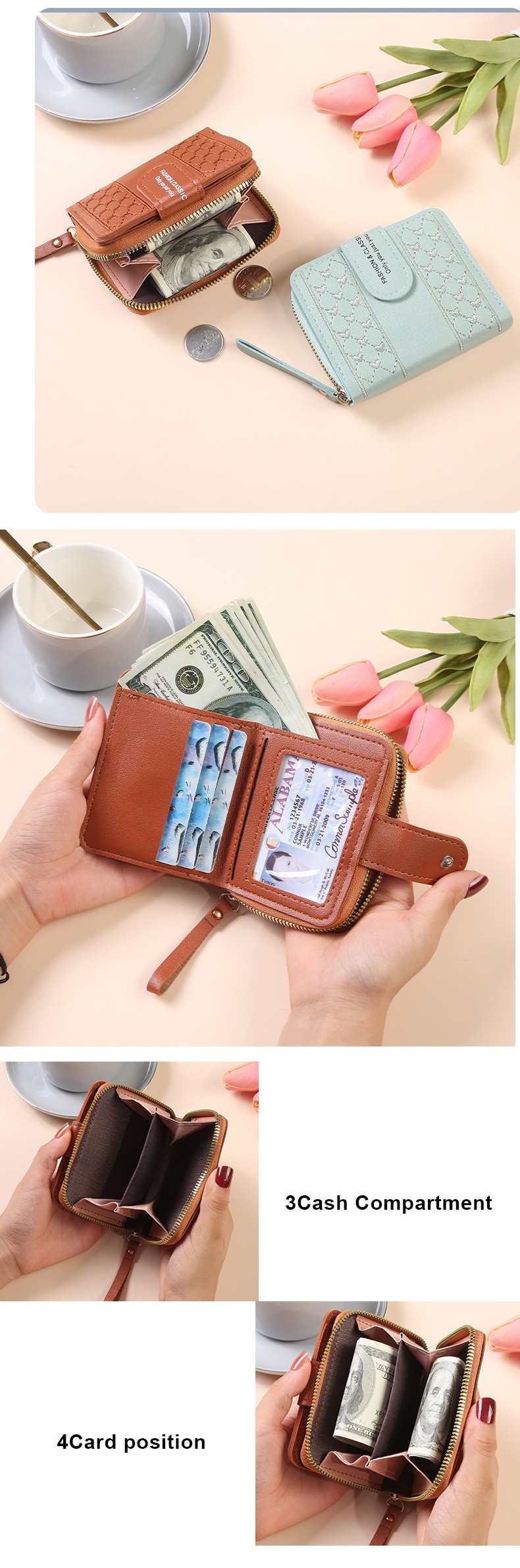 2025 새로운 여성 지갑 짧은 지퍼 대용량 동전 지갑 다목적 사랑 컬러 클러치 백 카드 홀더