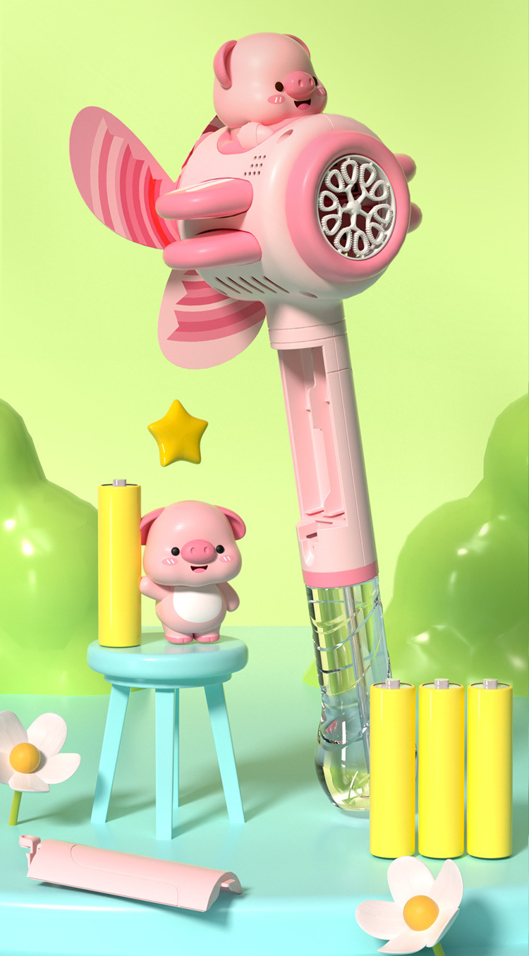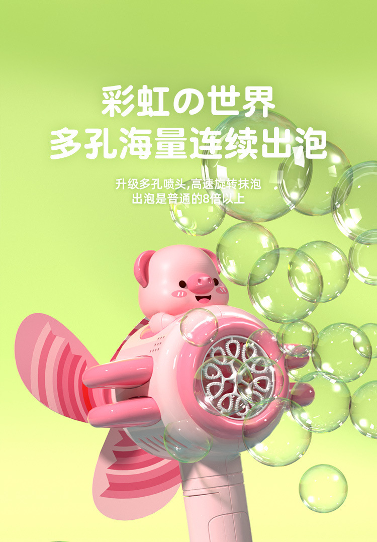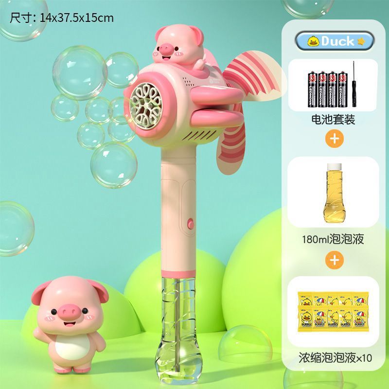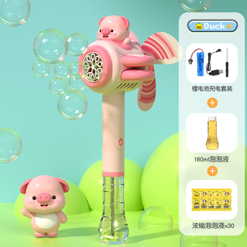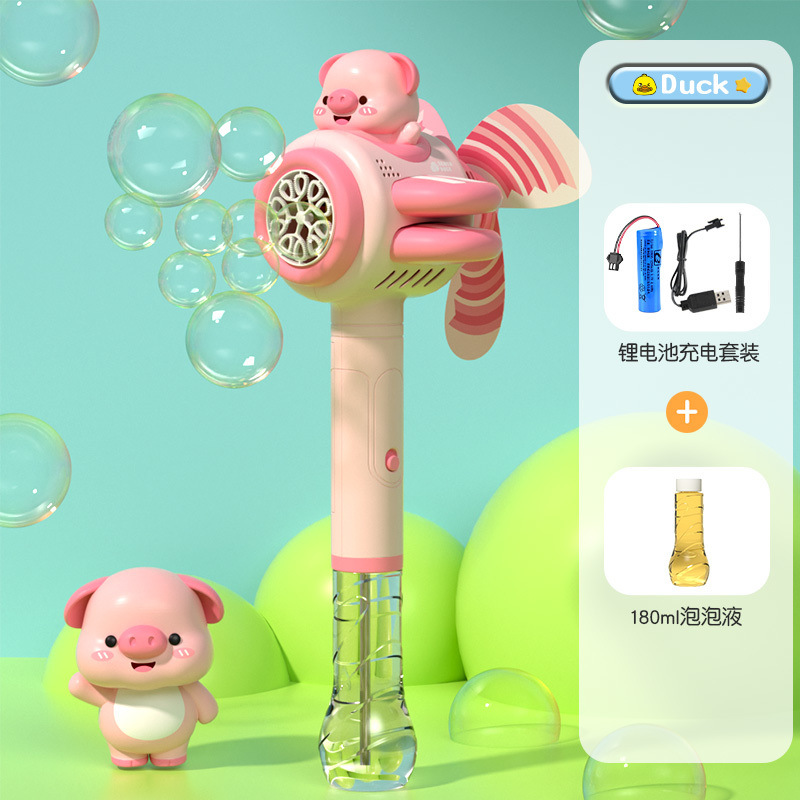 핑크 돼지 휴대용 풍차 버블 머신 전기 완전 자동 버블 부는 어린이 장난감 소녀와 소년 야외 어린이 날 선물스토어 가기