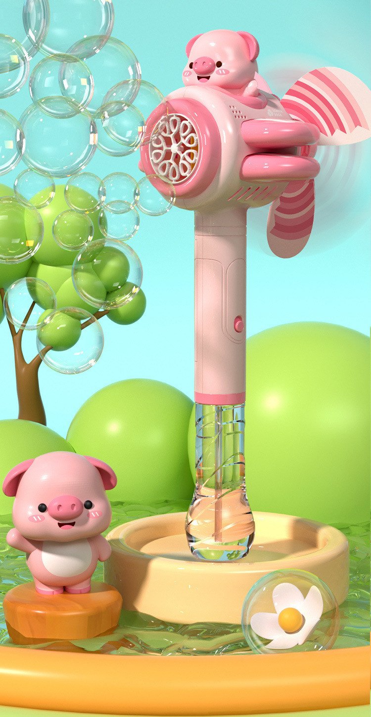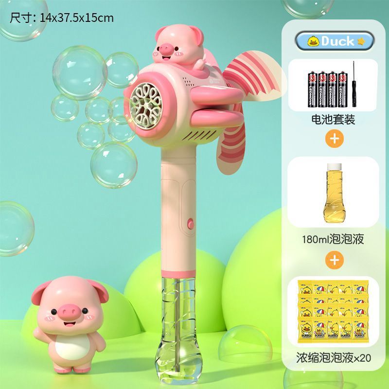 • 리틀 핑크 돼지 전기 풍차 버블 완드 [표준 배터리 버전] - 버블 머신 [공장 표준 버전: 배터리 + 드라이버를 직접 가져와야 함]