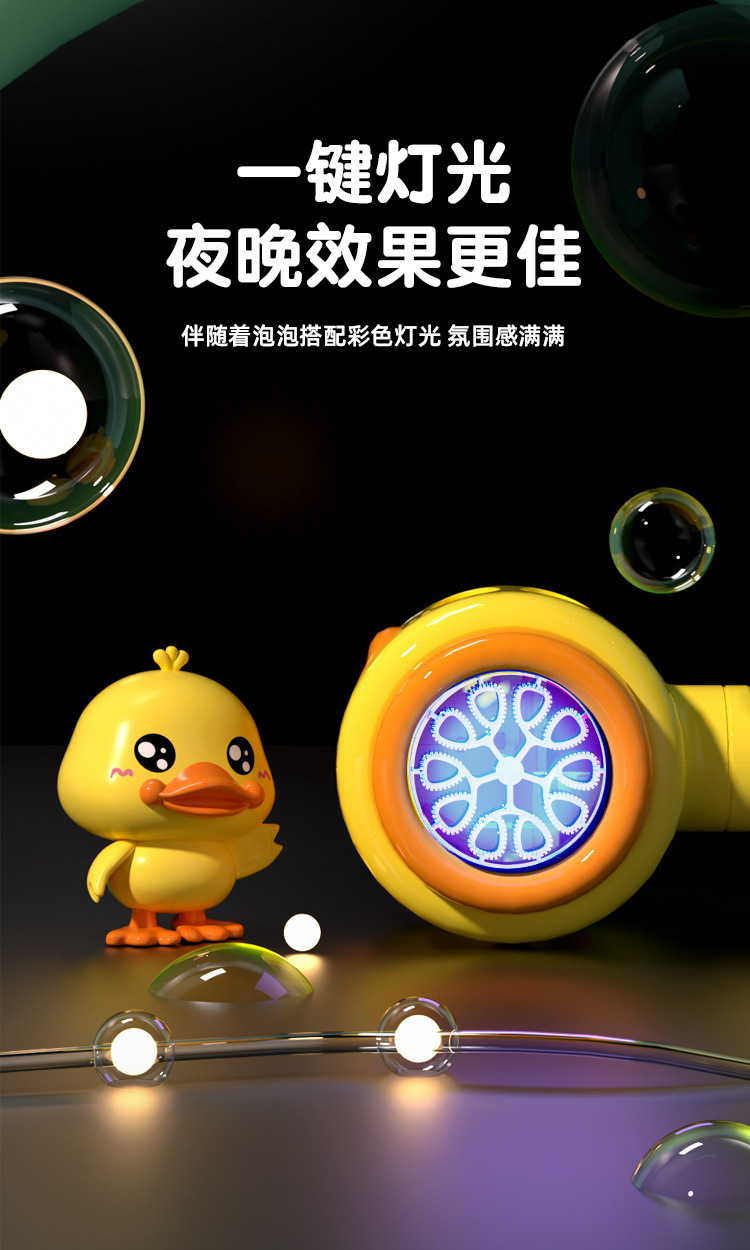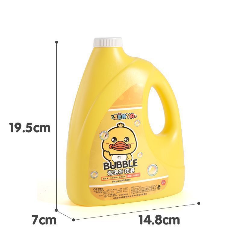 • 작은 노란 오리 전기 풍차 버블 완드 [표준 배터리 버전] - 버블 머신 + 배터리 드라이버 + 버블 액체 10팩 + 버블 워터 1L