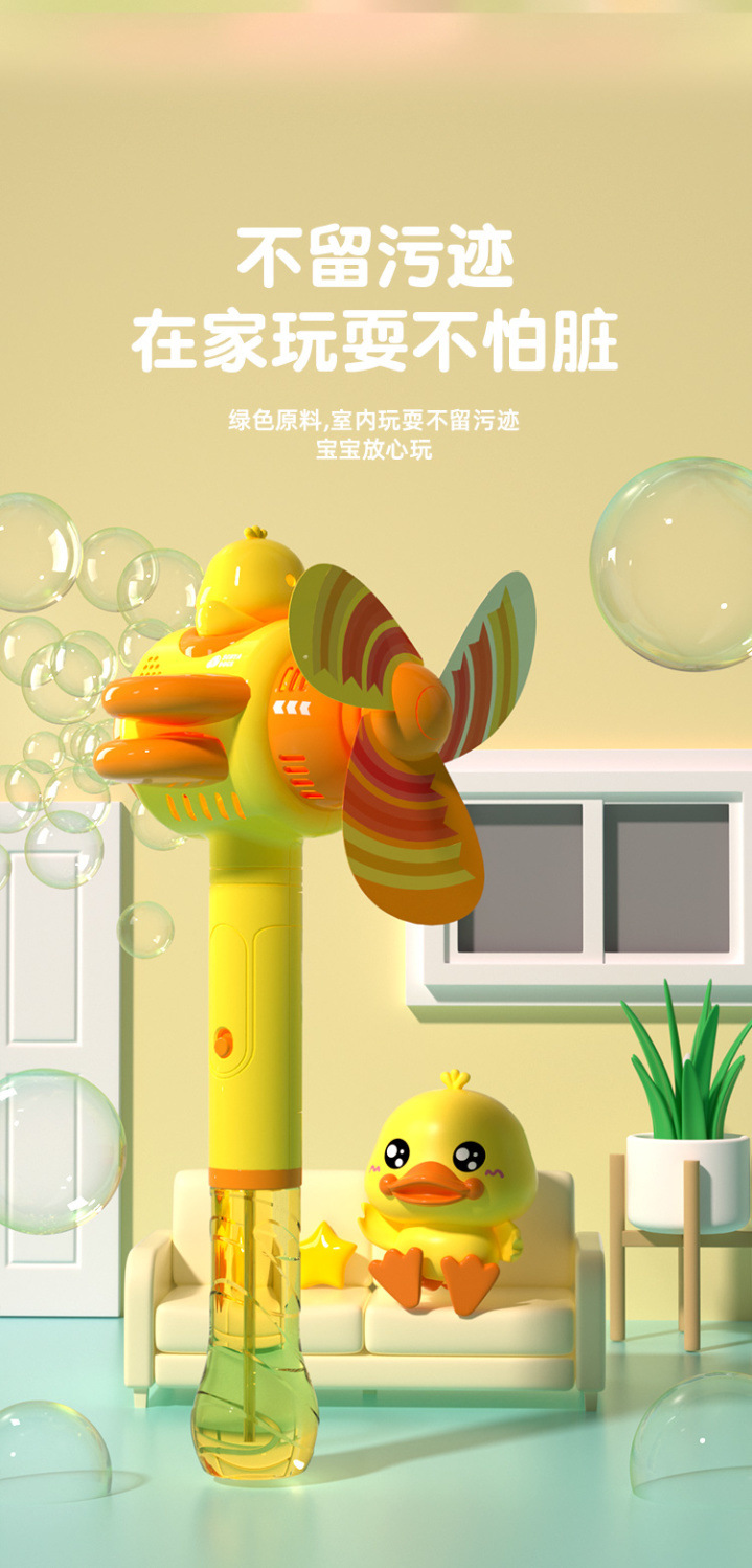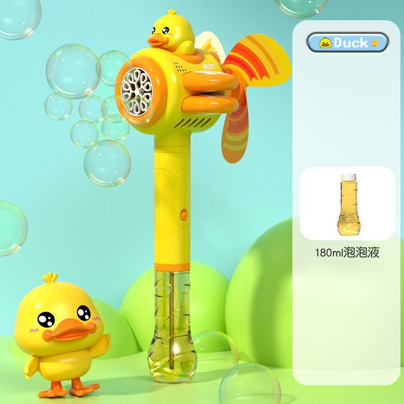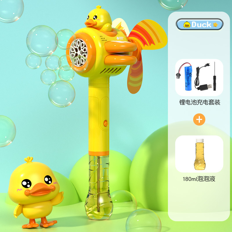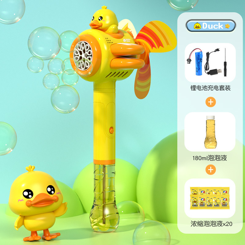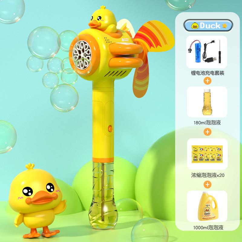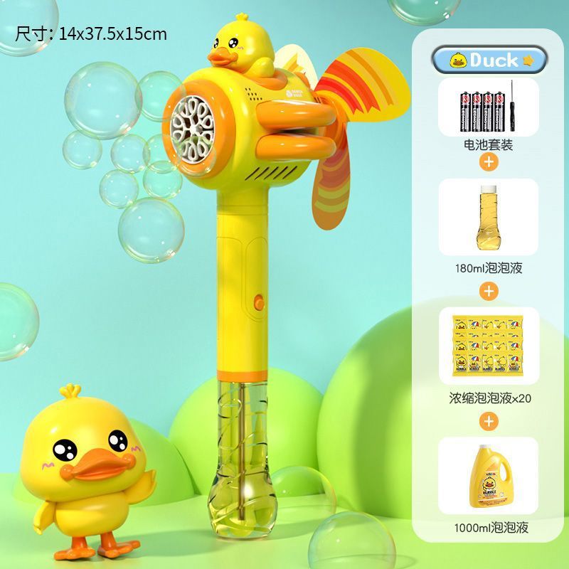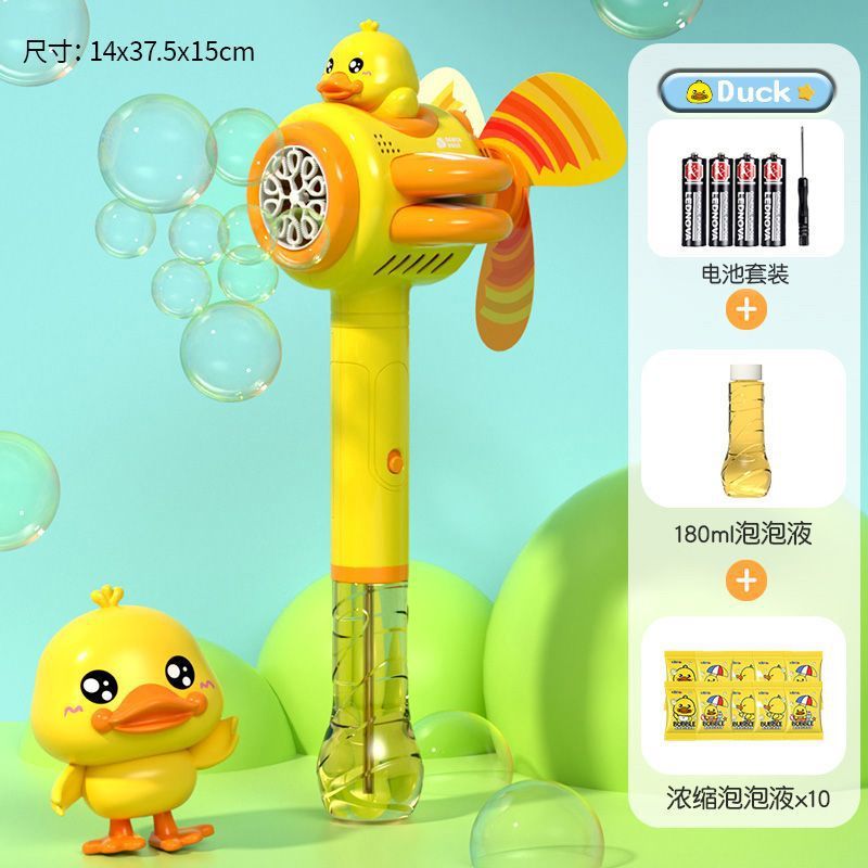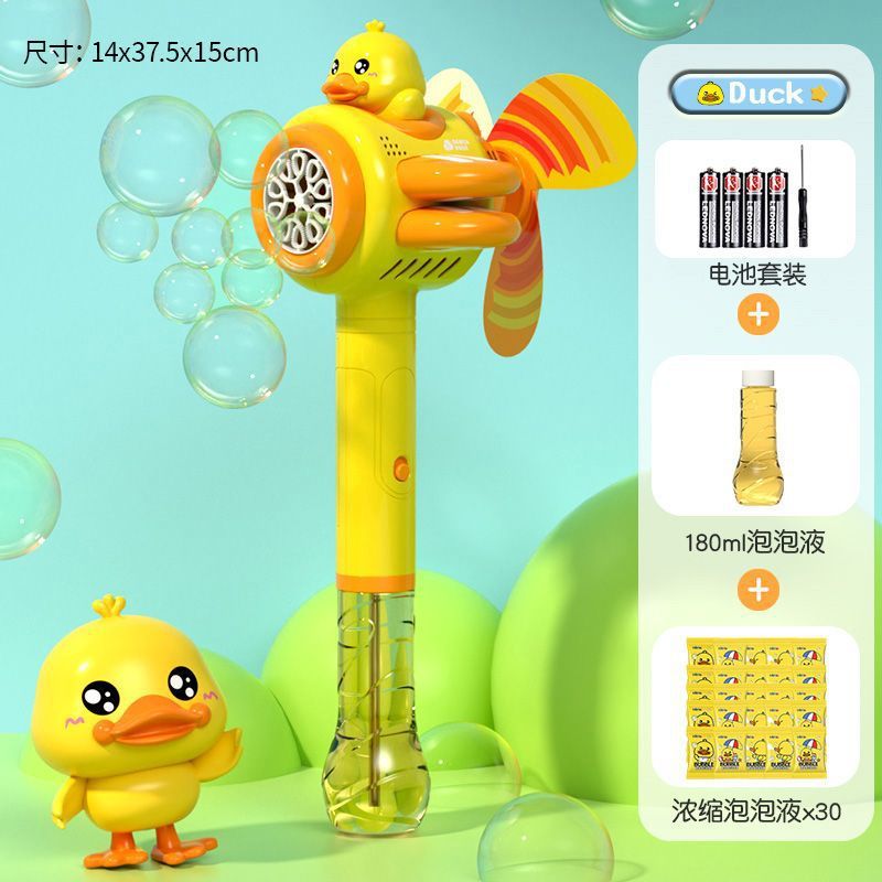 • 작은 노란 오리 전기 풍차 버블 완드 [표준 배터리 버전] - 버블 머신 + 배터리 드라이버 + 농축 버블 액체 10팩