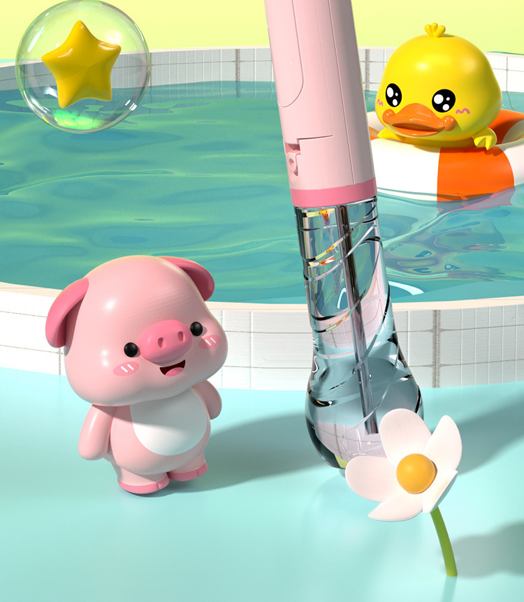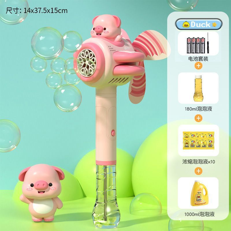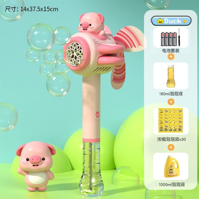 • 리틀핑크돼지 전동풍차 버블스틱 [표준 배터리 버전] - 버블머신 + 배터리 드라이버 + 버블액 10팩 + 버블수 1L