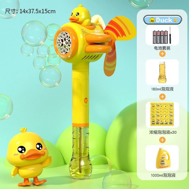 • 작은 노란 오리 전기 풍차 버블 완드 [표준 배터리 버전] - 버블 머신 + 배터리 드라이버 + 버블 액체 30팩 + 버블 워터 1L