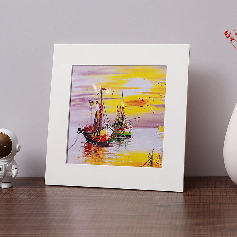 오일 파스텔 그림 프레임, 작은 정사각형 판지 사진 프레임, 프레임 디스플레이 작품, 간단한 장식 퍼즐 사진 벽