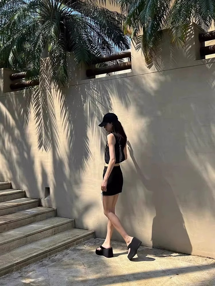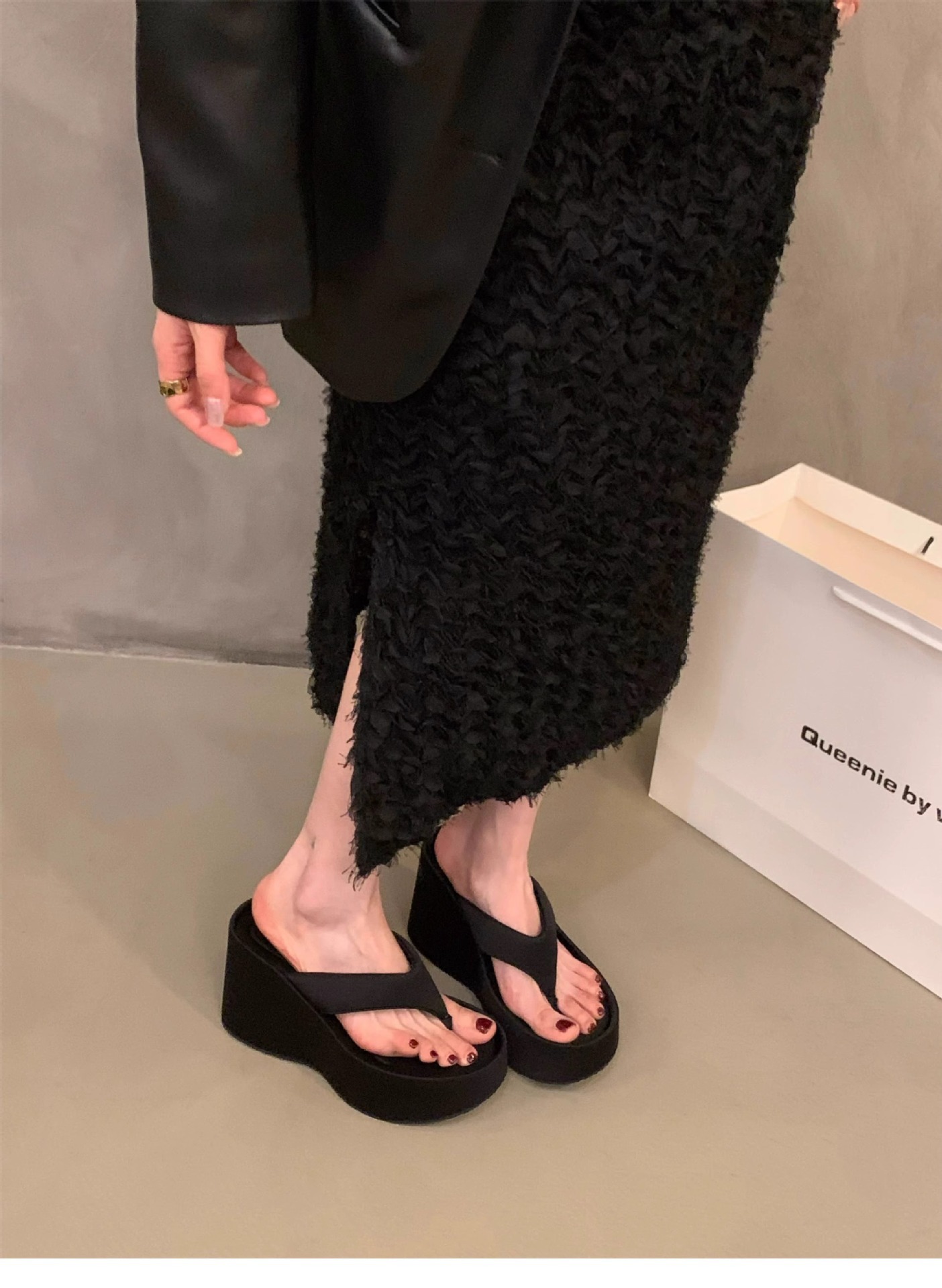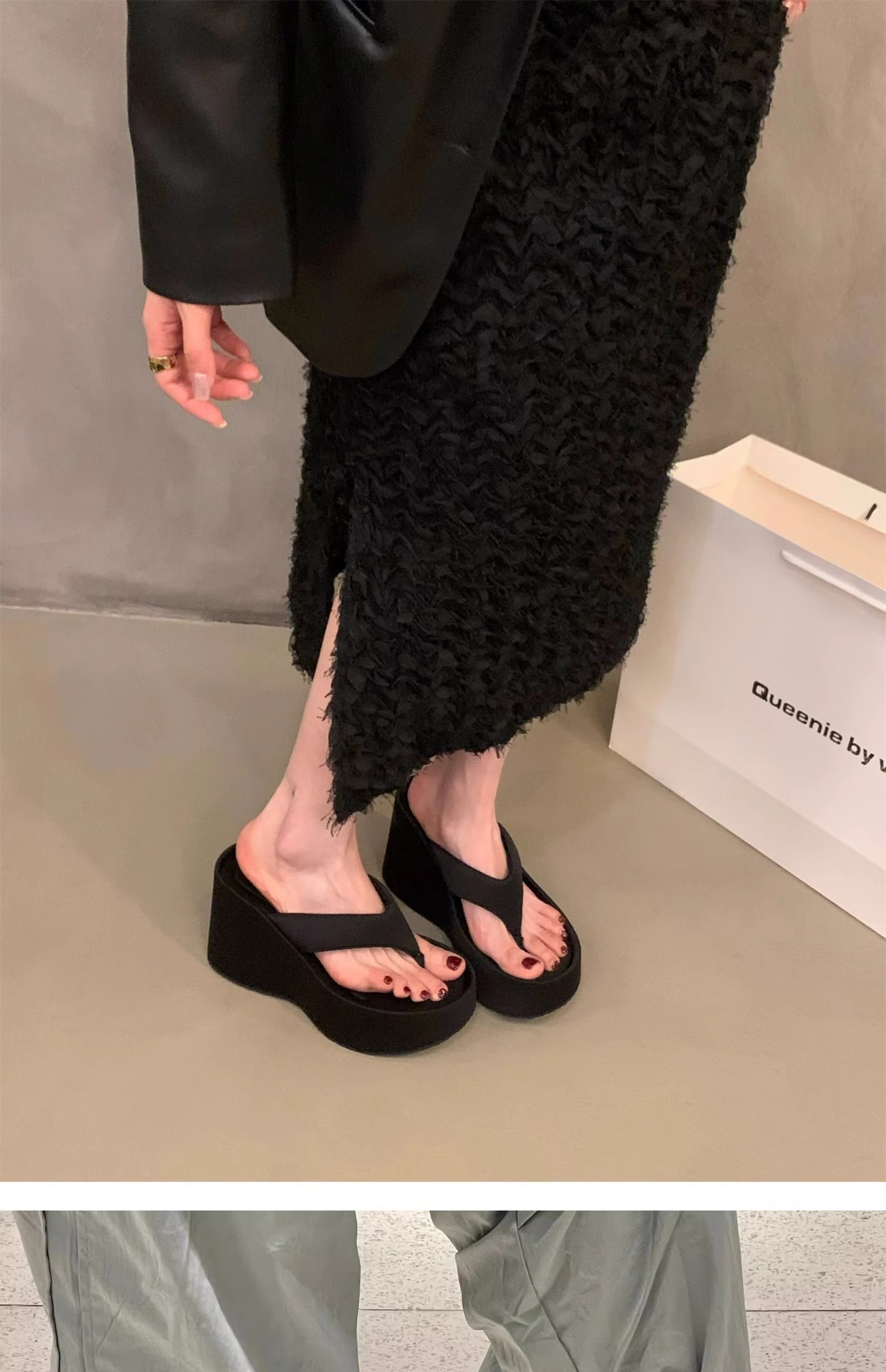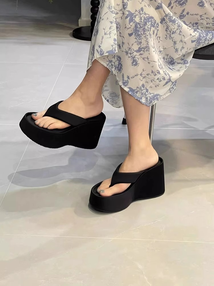 여성을 위한 작은 키를 위한 두꺼운 밑창 슬리퍼 2025 새로운 겉옷 플립플롭 플랫폼 웨지 샌들 작은 사이즈 3332