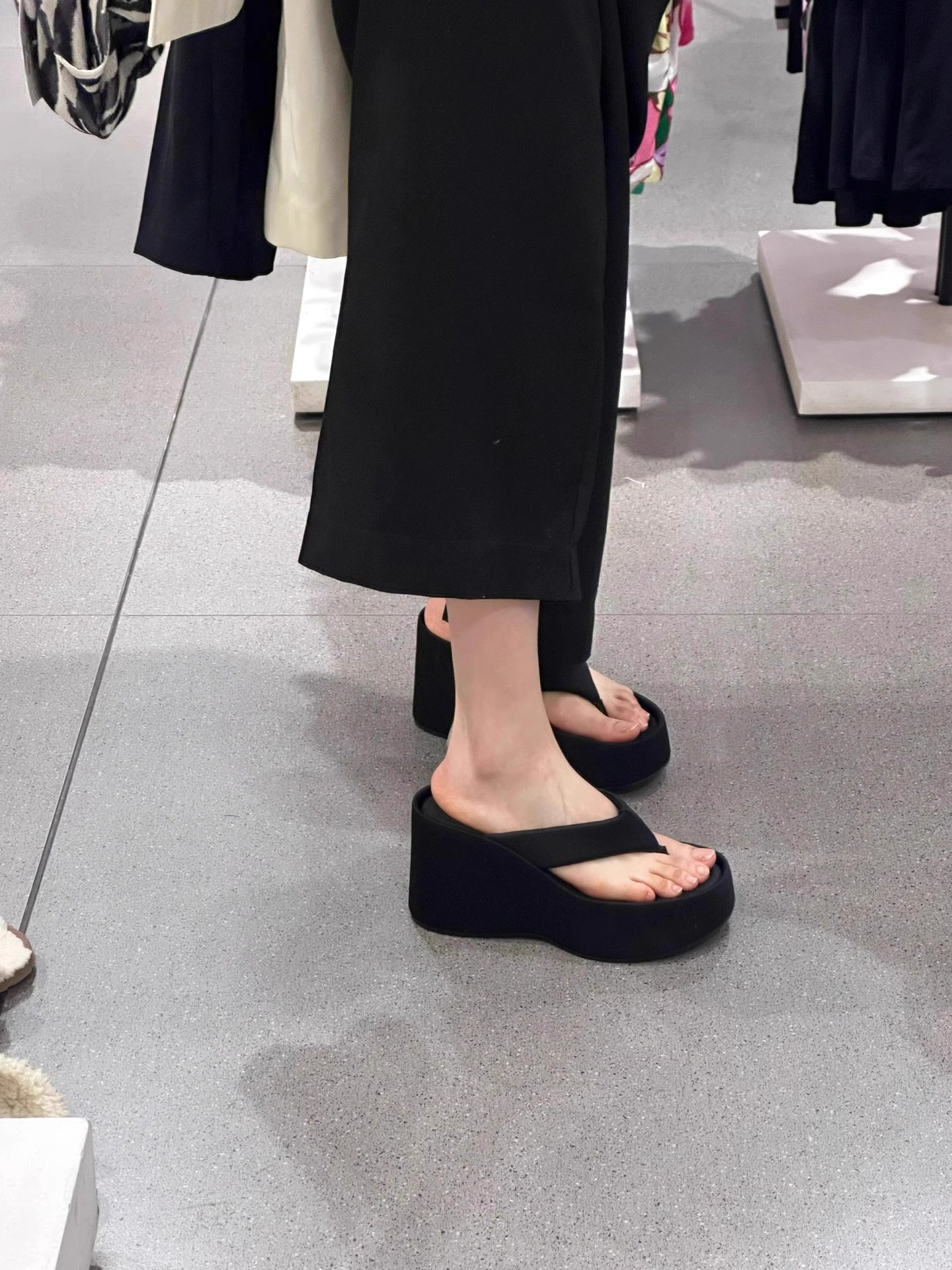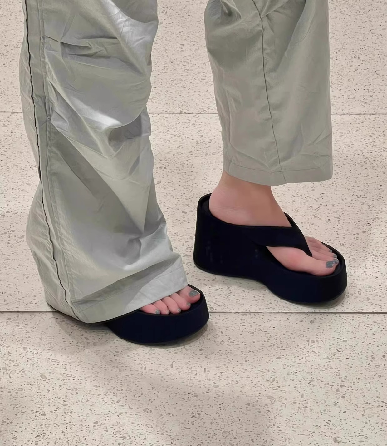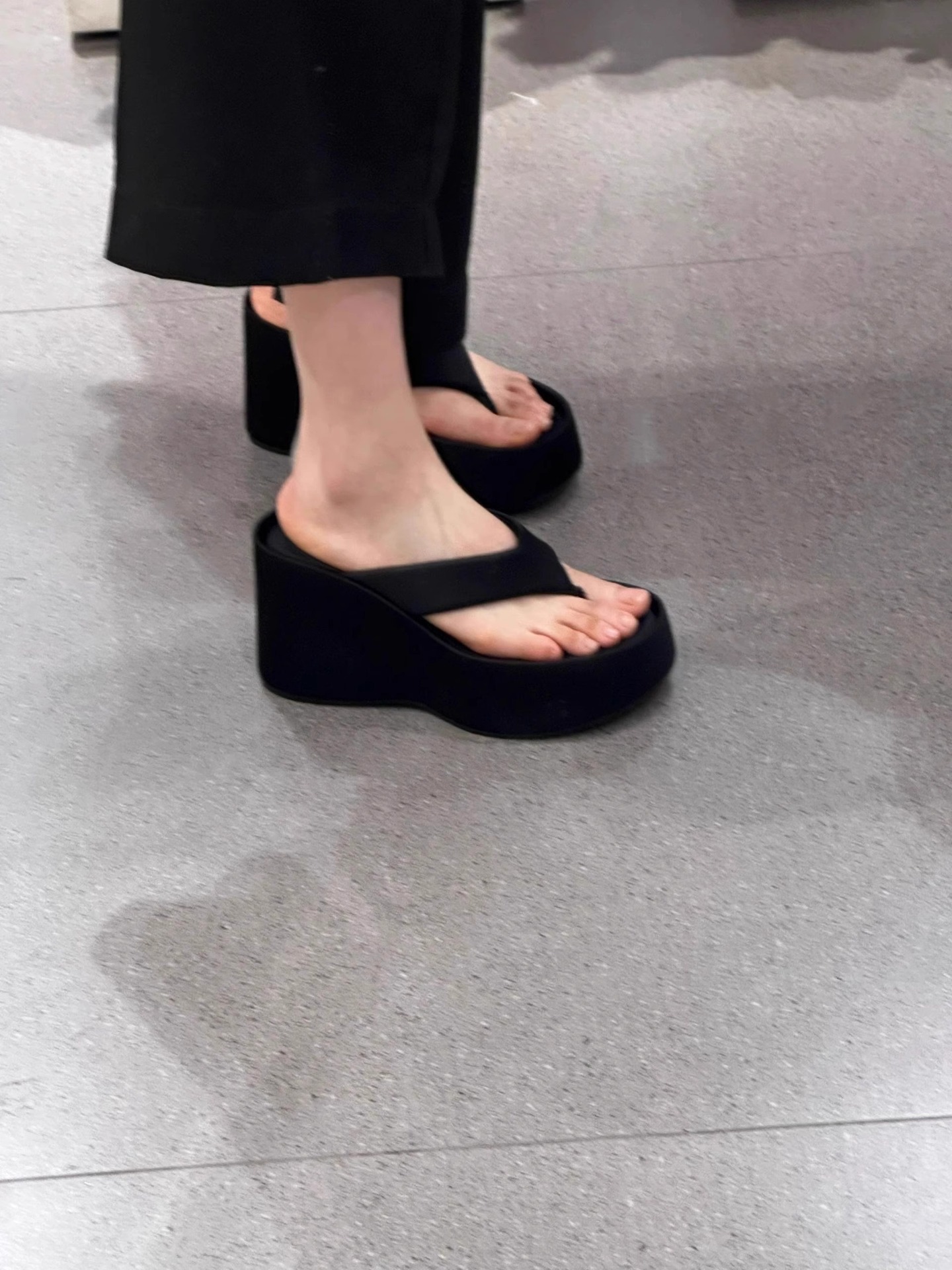 여성을 위한 작은 키를 위한 두꺼운 밑창 슬리퍼 2025 새로운 겉옷 플립플롭 플랫폼 웨지 샌들 작은 사이즈 3332스토어 가기