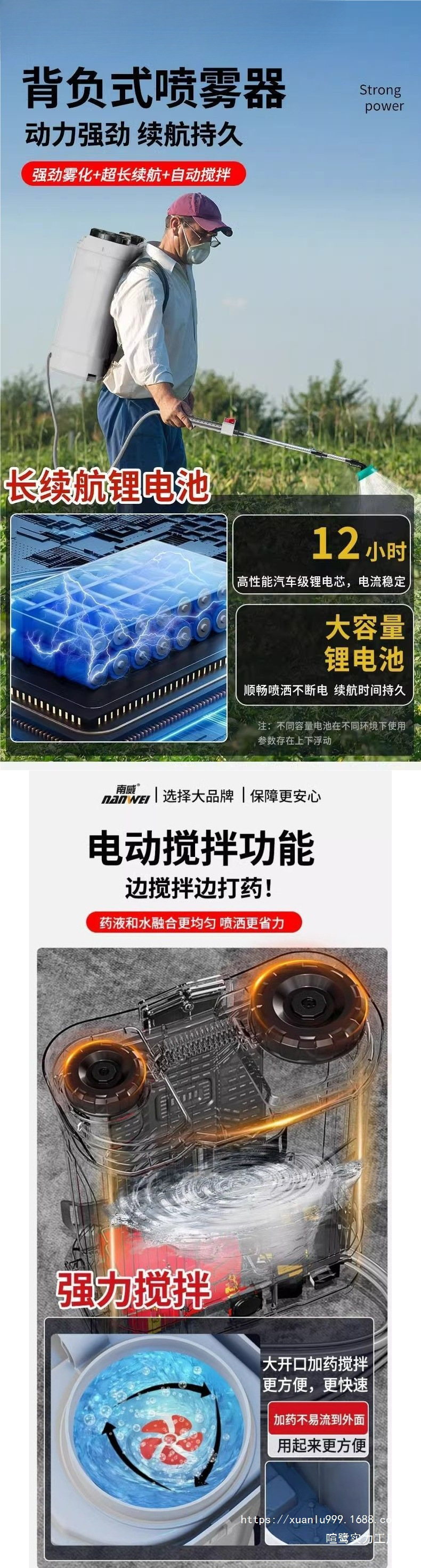 Nanwei 리튬 배낭형 지능형 전기 혼합 분무기 고압 농업 가정용 전기 분무기 물뿌리개 스프레이스토어 가기