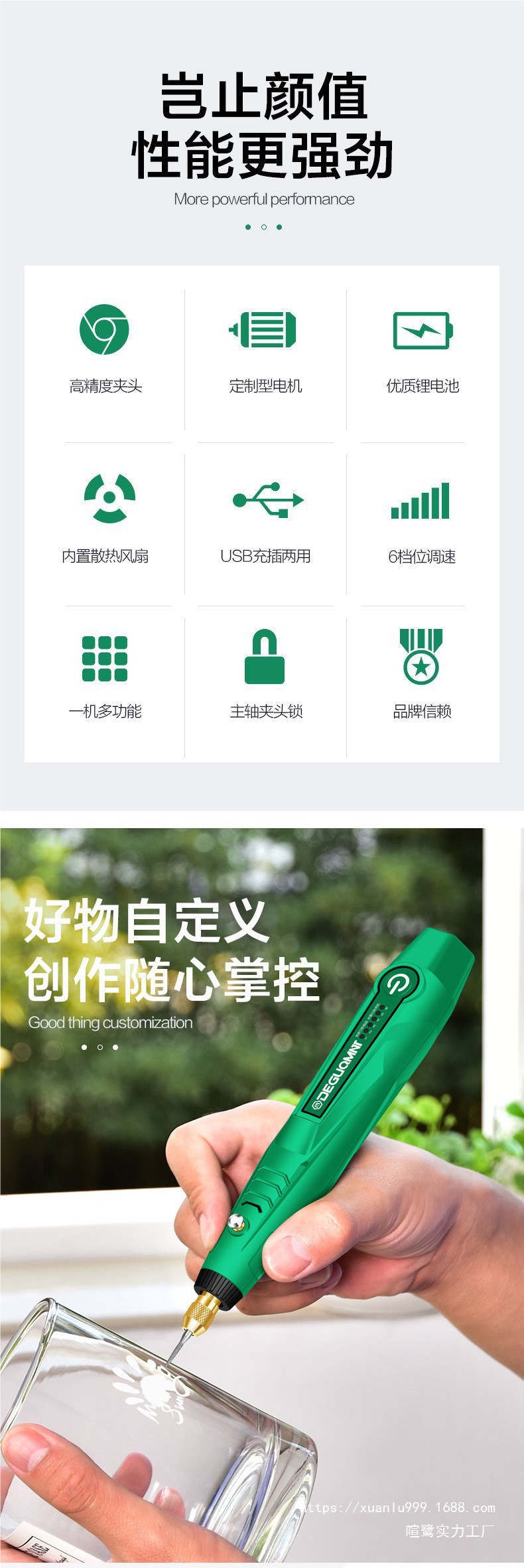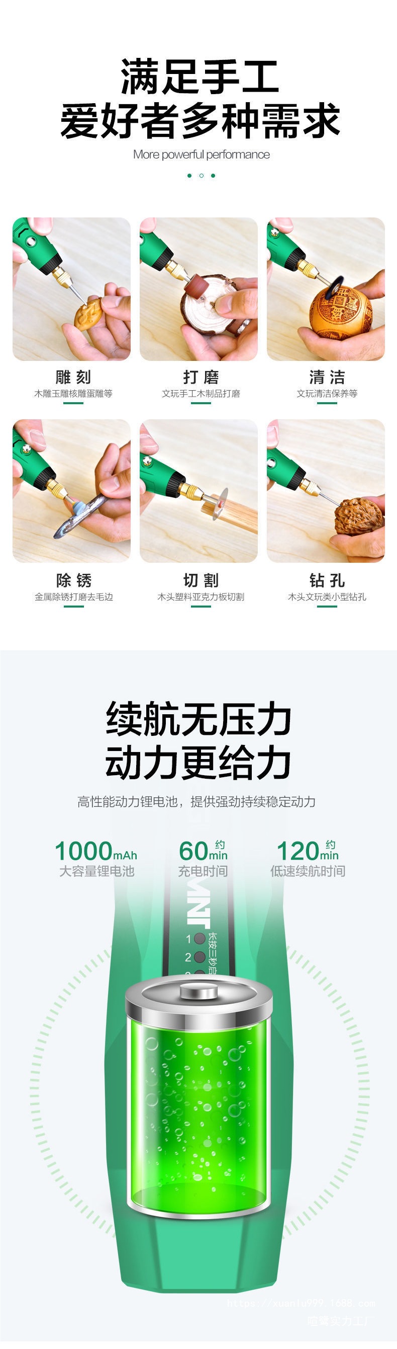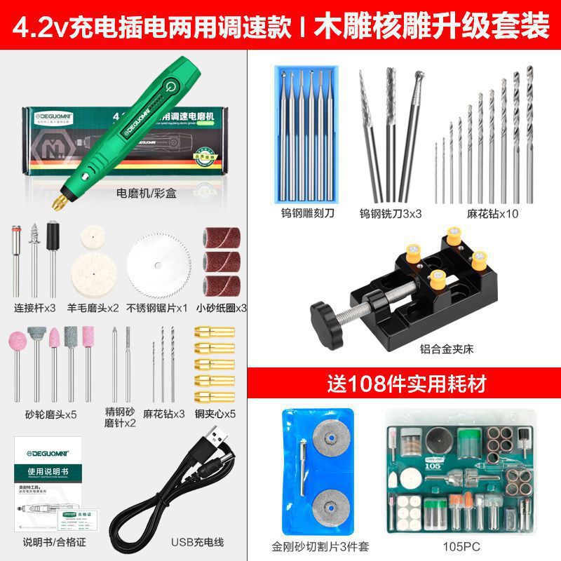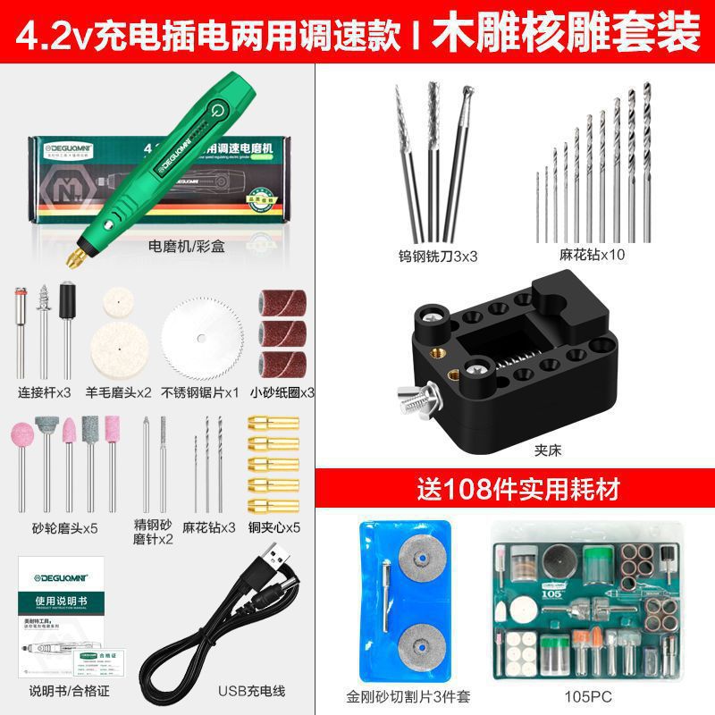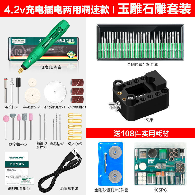 • 충전식 및 플러그인 [6단 속도 조절] 목각 + 옥 조각