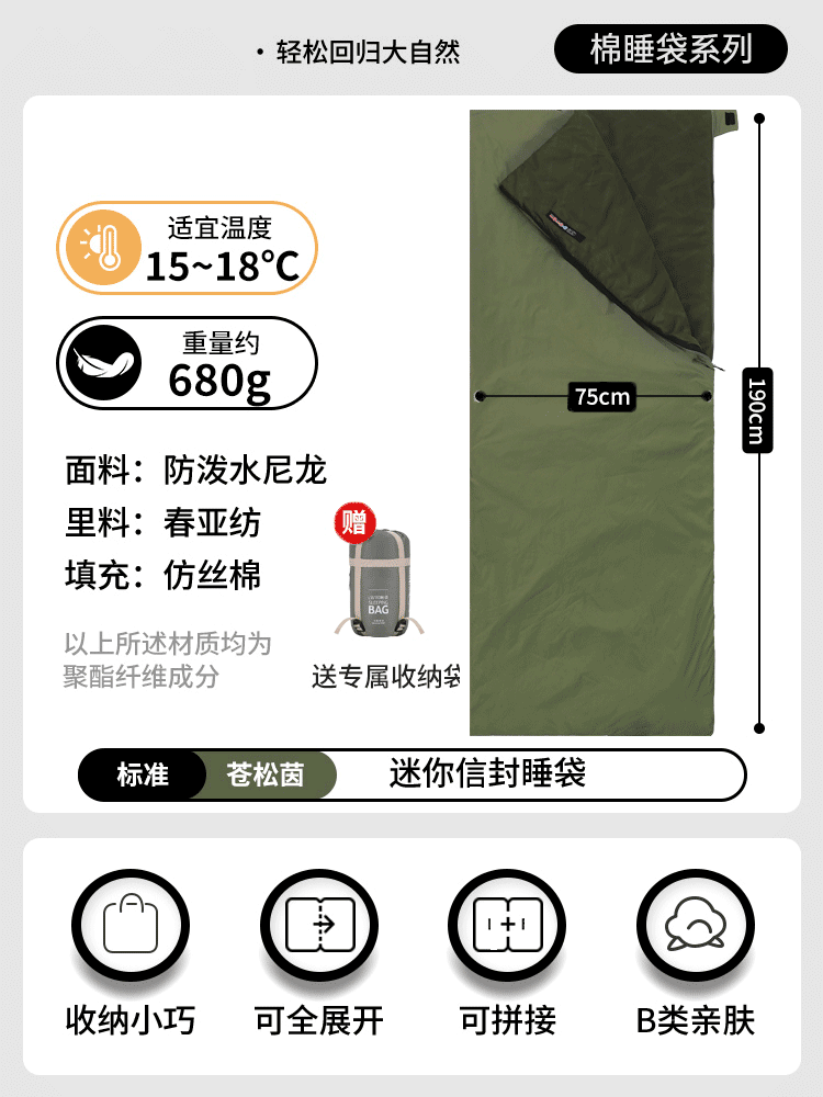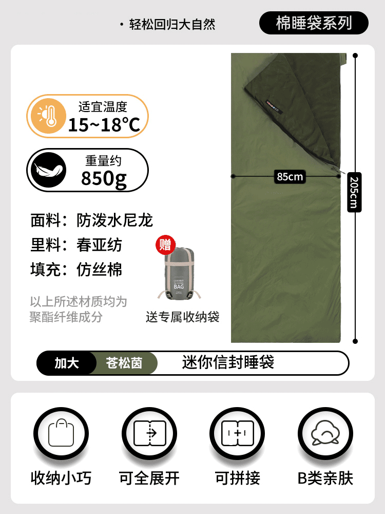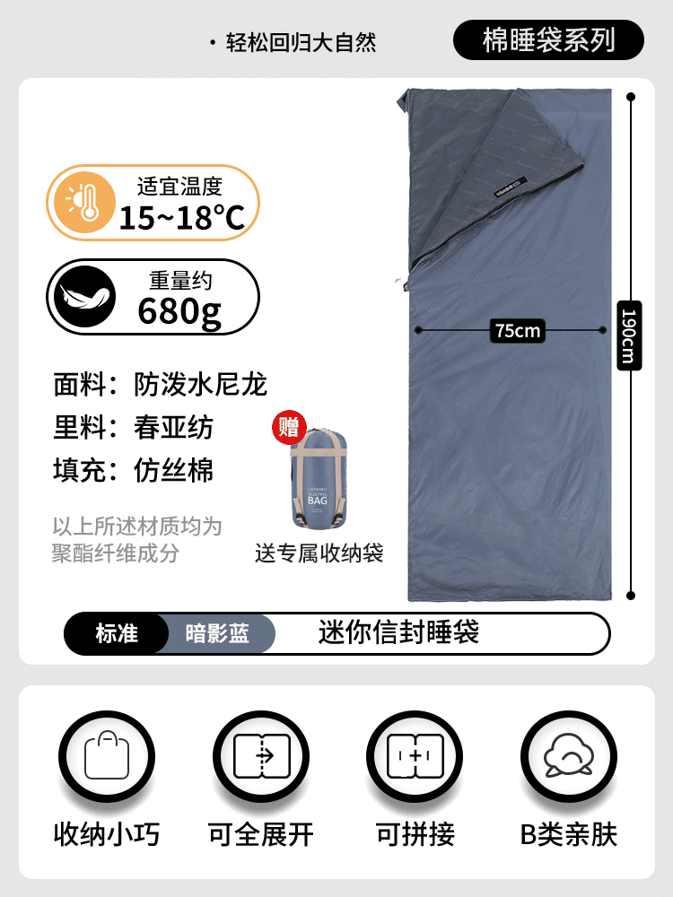 야외용 경량 성인 캠핑 가을 겨울 얇은 텐트 이불 사계절 사용 가능한 침낭, 휴대용 및 먼지 방지스토어 가기