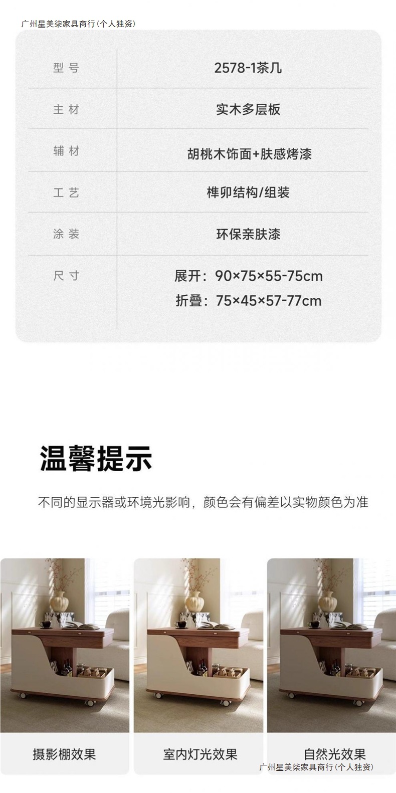 새로운 호두 접이식 커피 테이블 현대적인 간단한 이동식 커피 테이블 거실 리프팅 접이식 트롤리