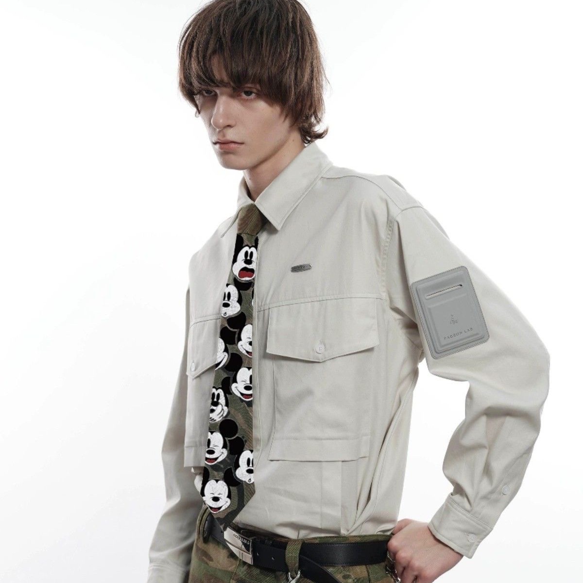 홈메이드 감성 미키 넥타이 위장 패턴 넥타이 오리지널 디자이너스토어 가기
