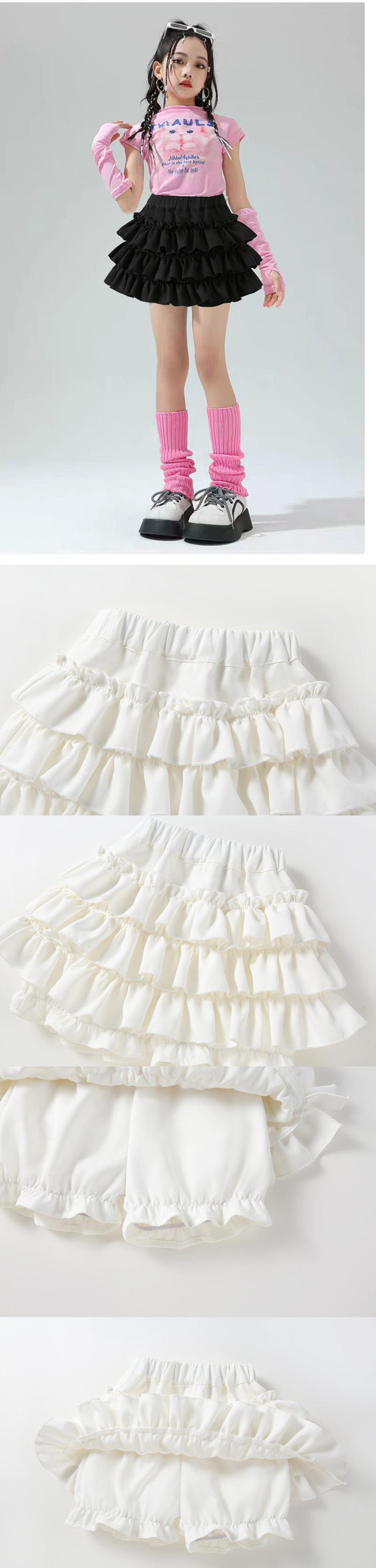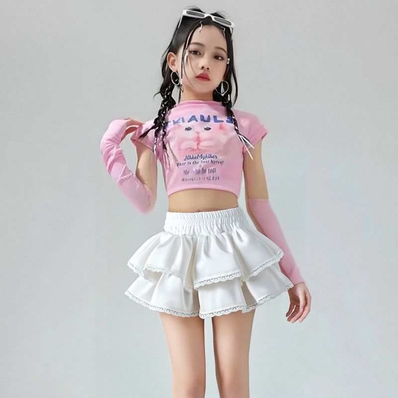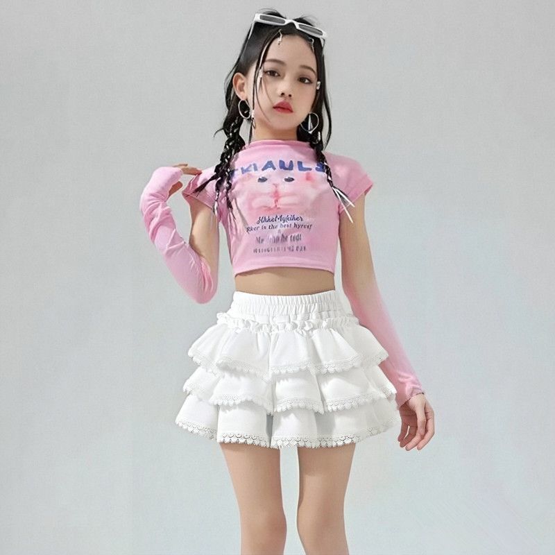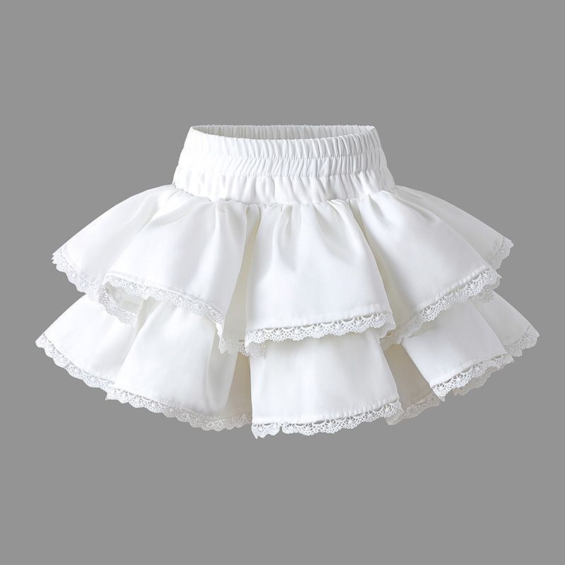 여아 노출 방지 3단 케이크 스커트 여름 화이트 핑크 스커트 어린이 패션 다용도 퍼프 스커트