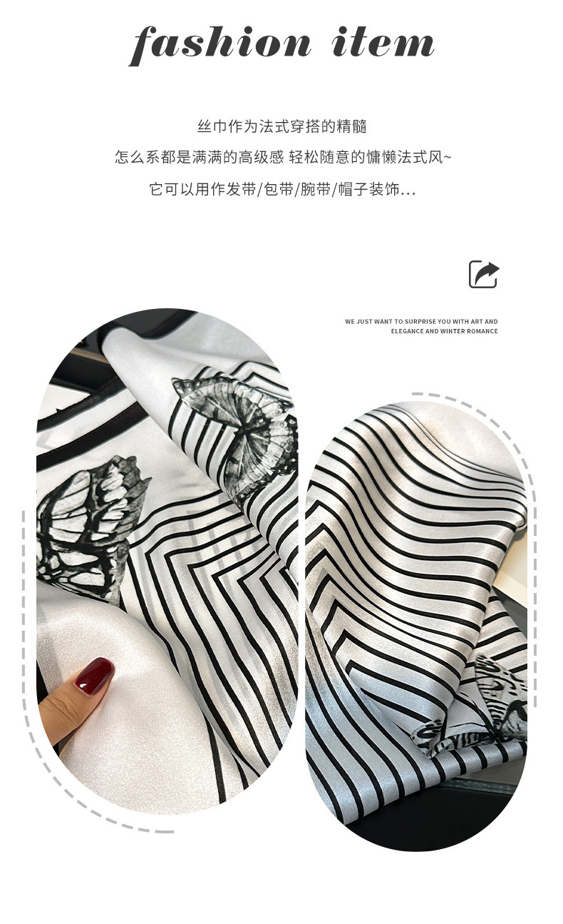 흑백 줄무늬 작은 사각형 스카프 여성 스카프 봄과 가을 셔츠와 일치하는 직업 장식 목 보호대 목 얇은 목도리